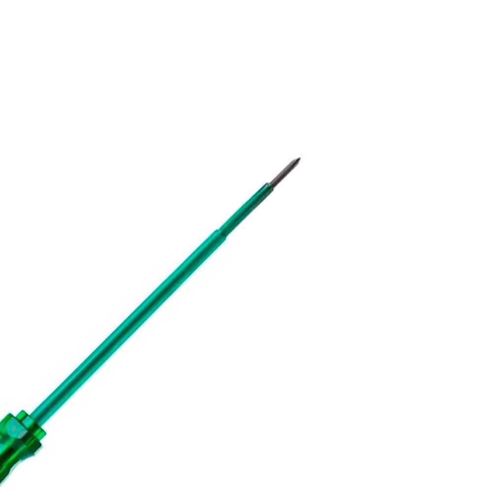 Chave Phillips® Isolada com cabo PVC translucido verde com haste isolada de acordo com NR10. Garante proteção ao profissional quando utilizadas em trabalhos com áreas energizadas. Ponta oxidada para evitar descascamento e proporcionar mais segurança. Possui a haste toda temperada com acabamento niquelado e cromado. Atende e supera norma - NBR 9699. Esta Norma aplica-se a ferramentas manuais isoladas e isolantes usadas para trabalho em instalações elétricas energizadas ou peças. Isolação do cabo para 1000v. Ideal para uso profissional pesado, seu cabo ergonômico rígido e resistente injetado em PVC na cor verde translucido deixa aparente a profundidade que a haste está garantindo máxima qualidade e resistência para o trabalho diário.