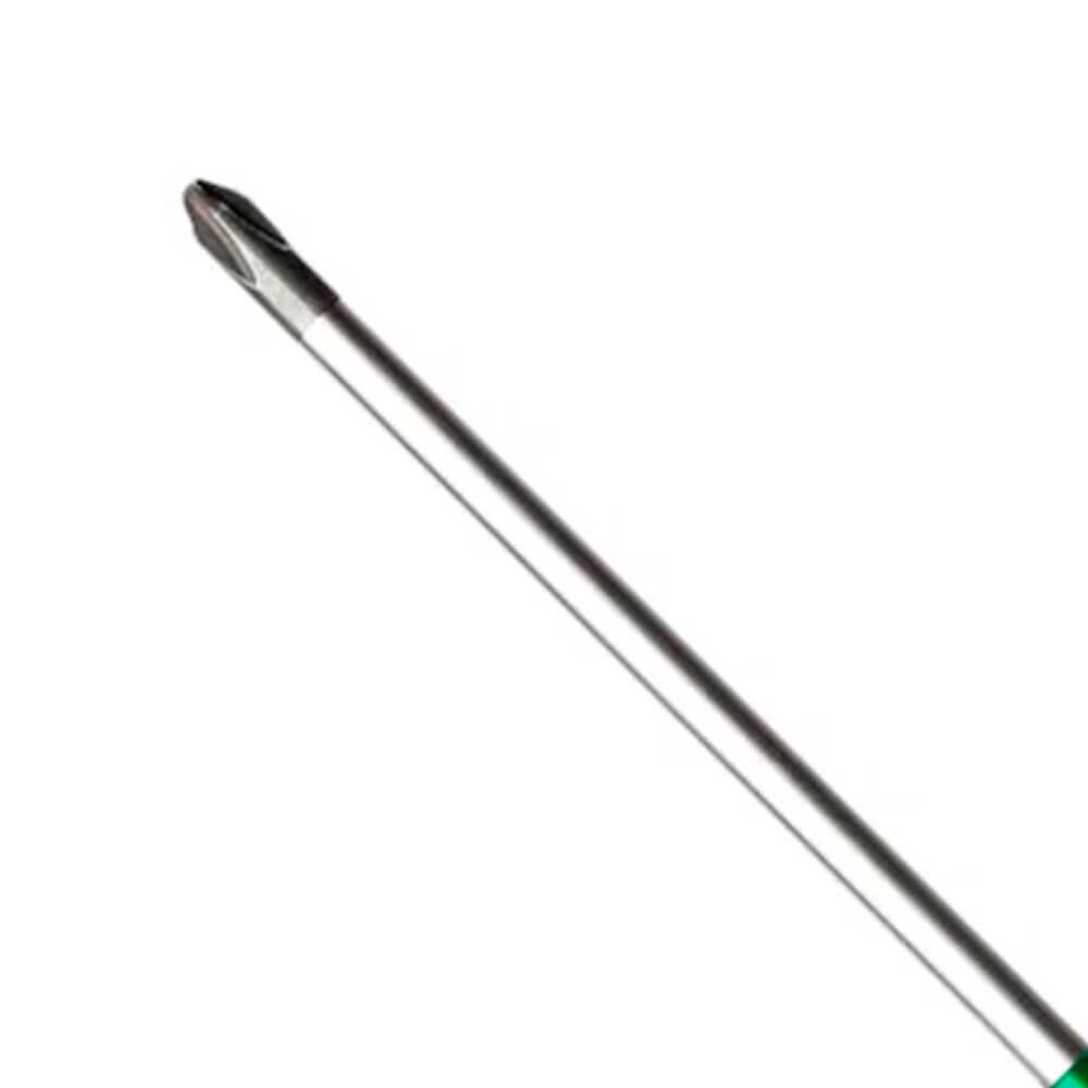 Chave Phillips® com cabo PVC translucido verde ergonômico com ponta oxidada para evitar descascamento e proporcionar mais segurança. Possui a haste toda temperada com acabamento niquelado e cromado.Ideal para uso profissional pesado, seu cabo ergonômico rígido e resistente injetado em PVC na cor verde transparente deixa aparente a profundidade que a haste está garantindo máxima qualidade e resistencia para o trabalho diário.
