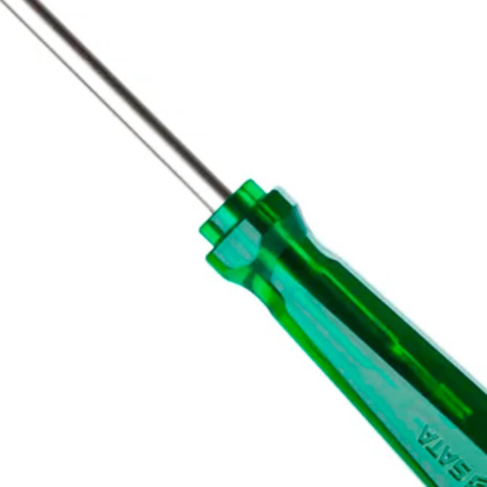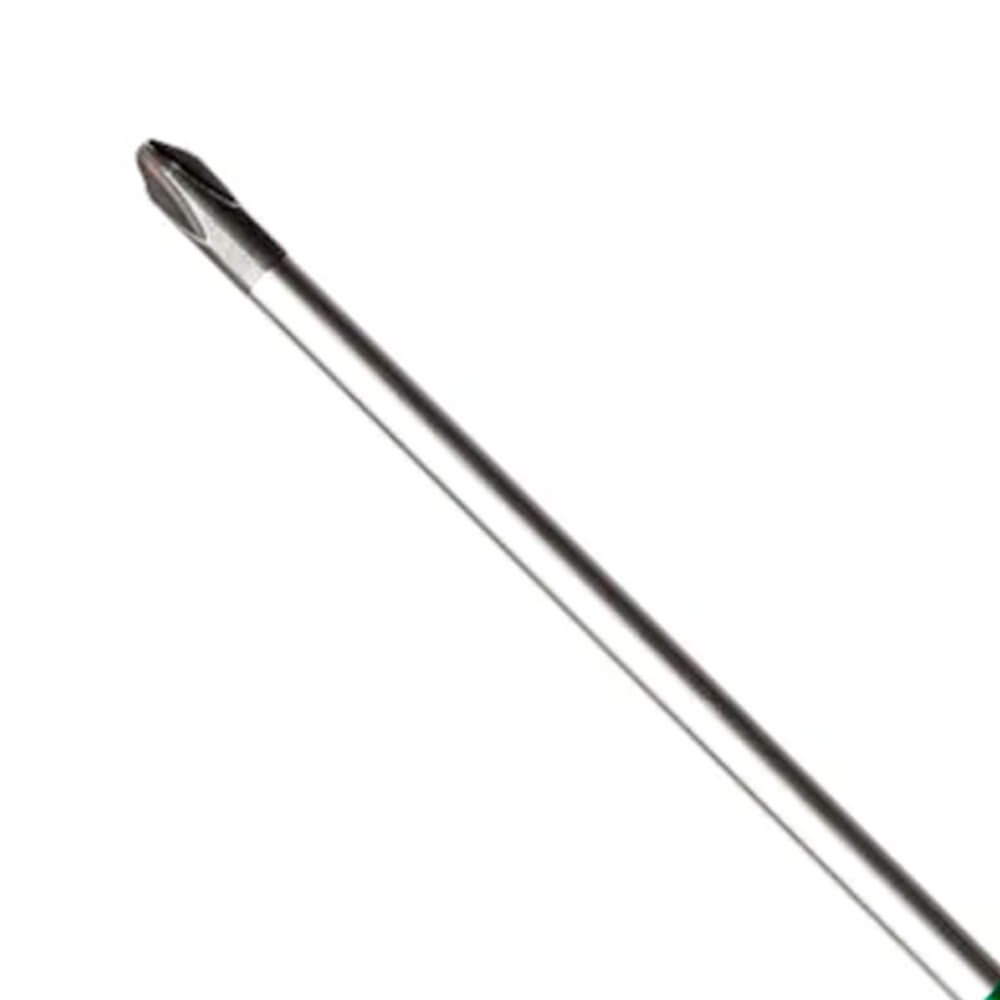 Chave Phillips® com cabo PVC translucido verde ergonômico com ponta oxidada para evitar descascamento e proporcionar mais segurança. Possui a haste toda temperada com acabamento niquelado e cromado. Ideal para uso profissional pesado, seu cabo ergonômico rígido e resistente injetado em PVC na cor verde transparente deixa aparente a profundidade que a haste está garantindo máxima qualidade e resistência para o trabalho diário.