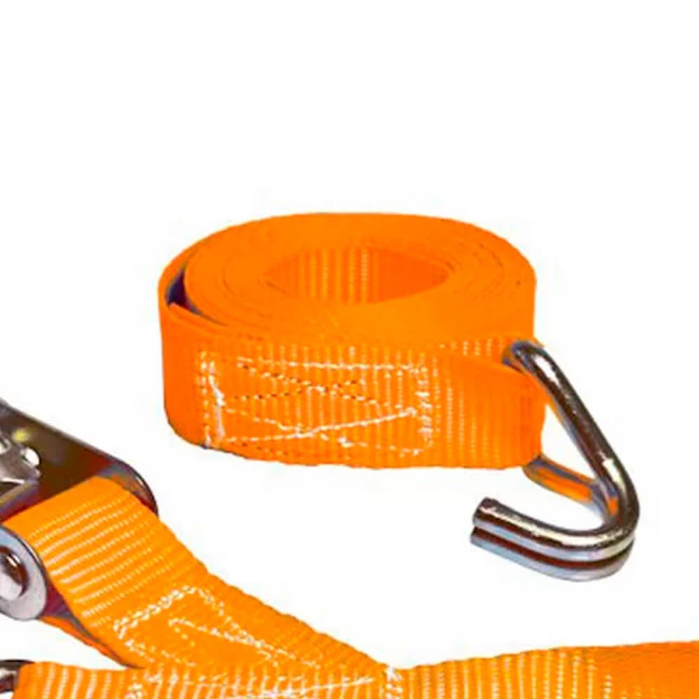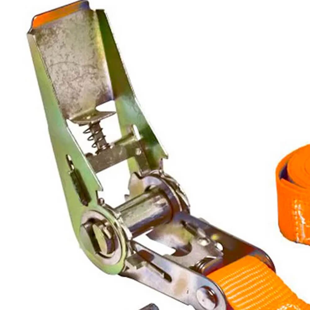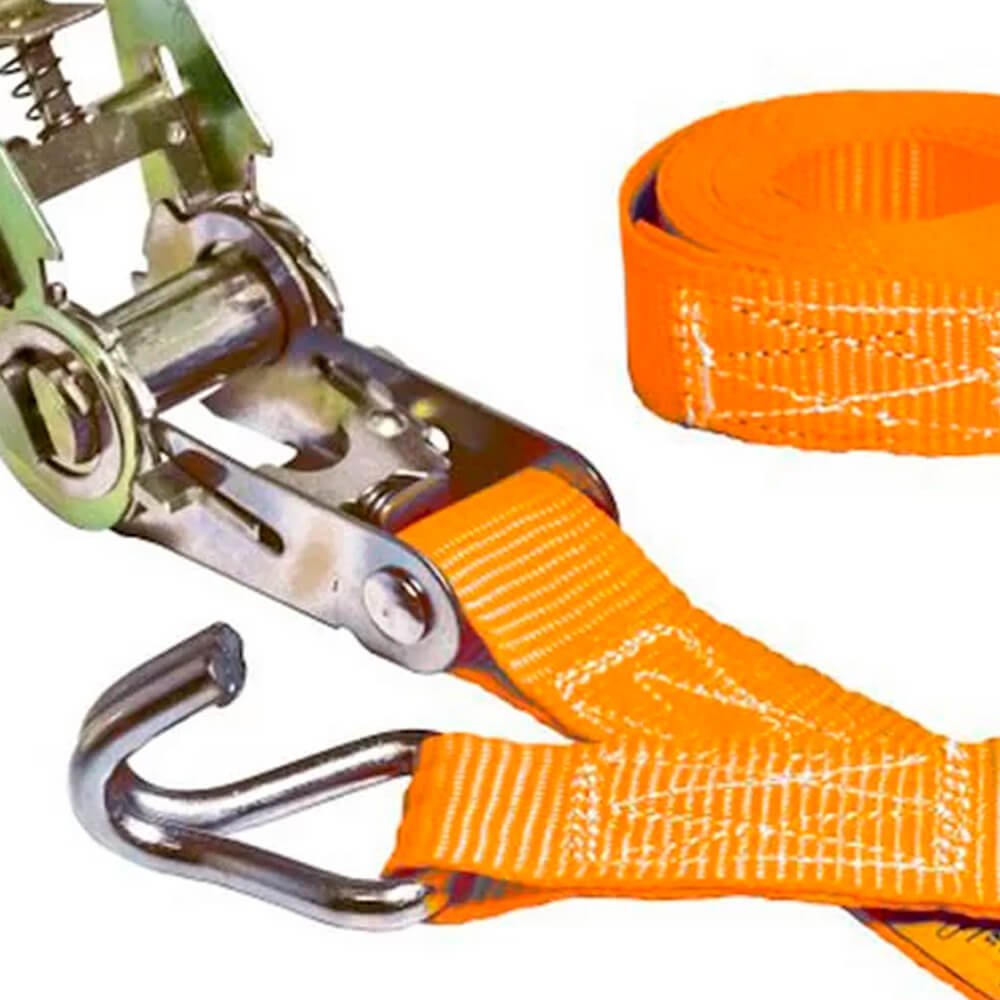 A Cinta para Amarração com Catraca é feita com terminal de gancho tipo J. Tanto o gancho quanto a catraca são feitos de aço bicromatizado. Este produto é indicado para amarração de cargas, guinchos, entre outros.