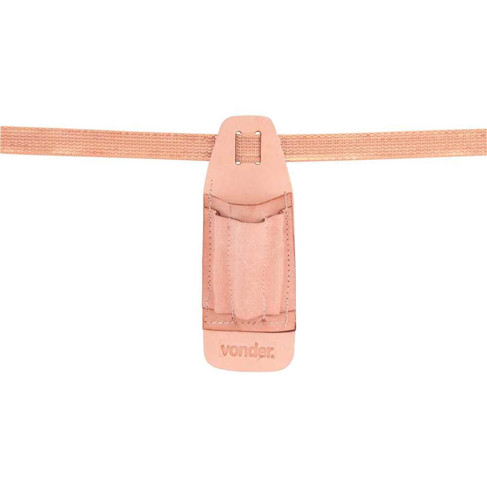 Cinto confeccionado em nylon com compartimento em couro para acondicionamento das ferramentas, proporcionando maior resistência.