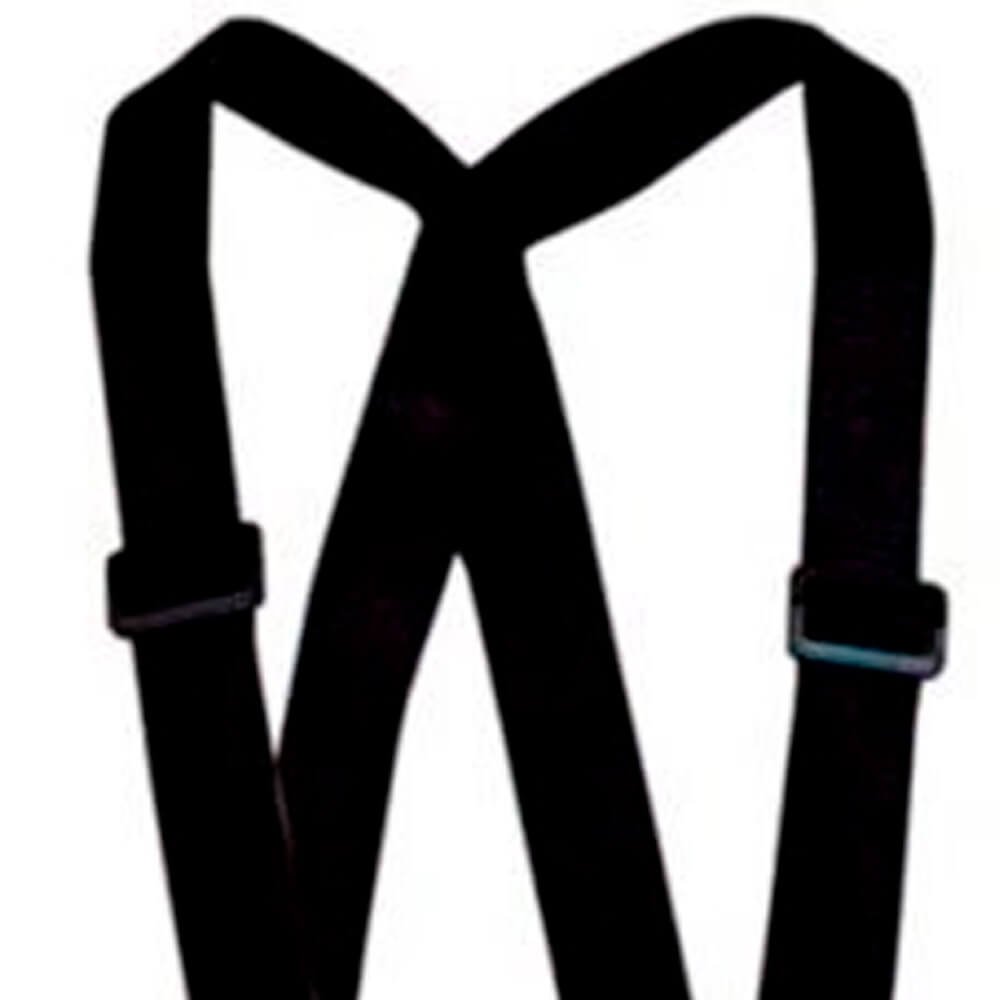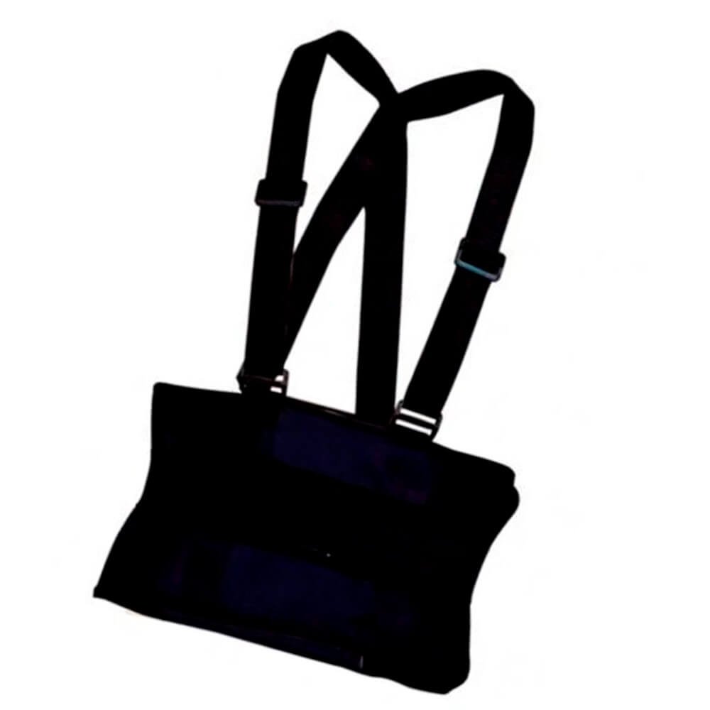 Cinto lombar ergonômico com alças ajustáveis, confeccionado em material sintético, com alças em nylon e passadores plásticos para ajuste.