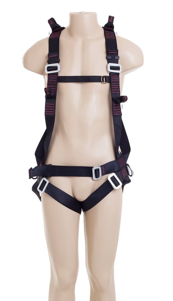 Cinturão de segurança tipo paraquedista/abdominal, confeccionado em fita de poliéster. Possui uma argola tipo “D” para conexão dorsal utilizada contra quedas e duas argolas em “D“ nas laterais, cintura, para descanso do talabarte e trabalho de posicionamento. Na região peitoral duas alças em fita de poliéster para conexão utilizadas contra quedas e duas alças em poliéster nos ombros para remoção do usuário em espaço confinado.