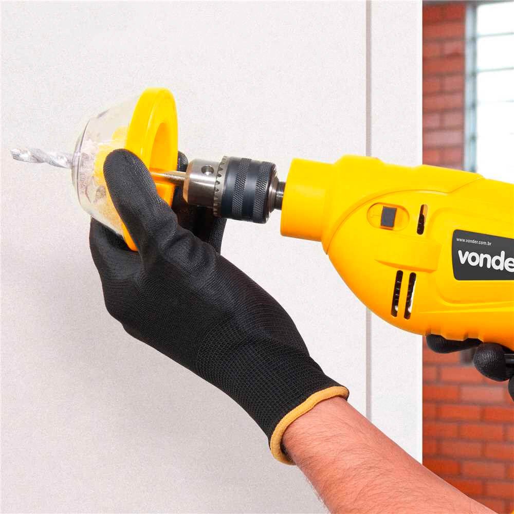 Armazena o resíduo produzido durante a perfuração em alvenaria, concreto, madeira, entre outros, mantendo o ambiente limpo.