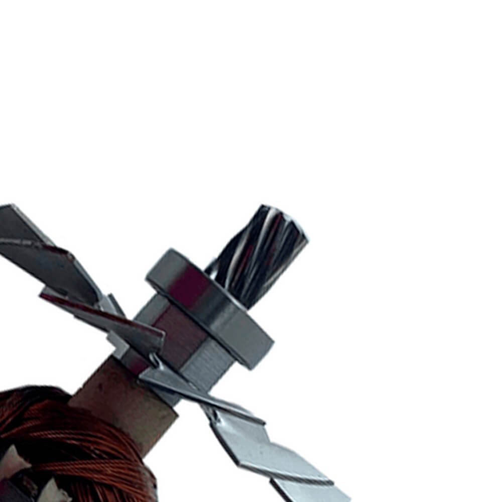 Induzido também conhecido como rotor, usado em conjunto com o estator ou bobina de campo e escovas de carvão.