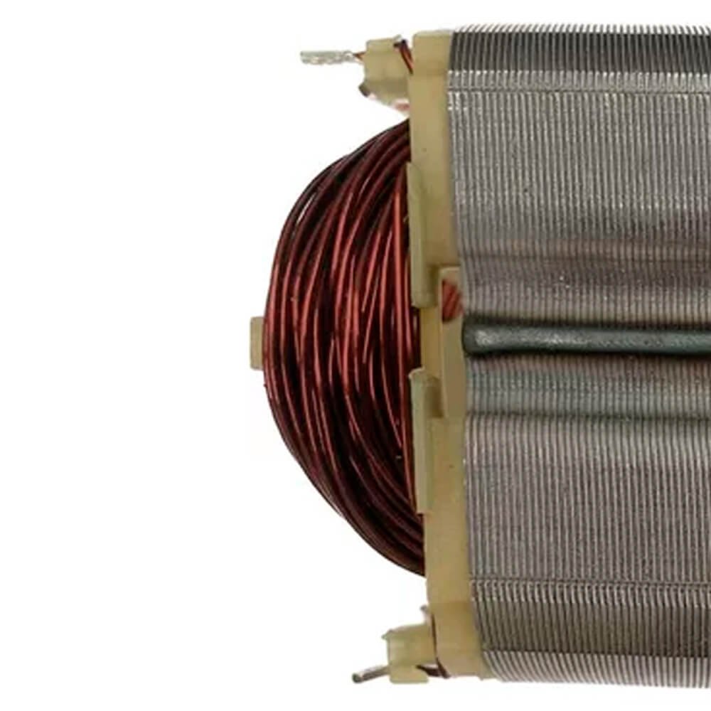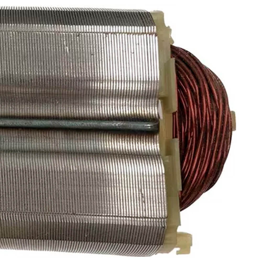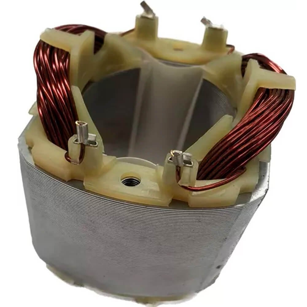 Estator também conhecido como bobina de campo, usado em conjunto com induzido e escovas de carvão.