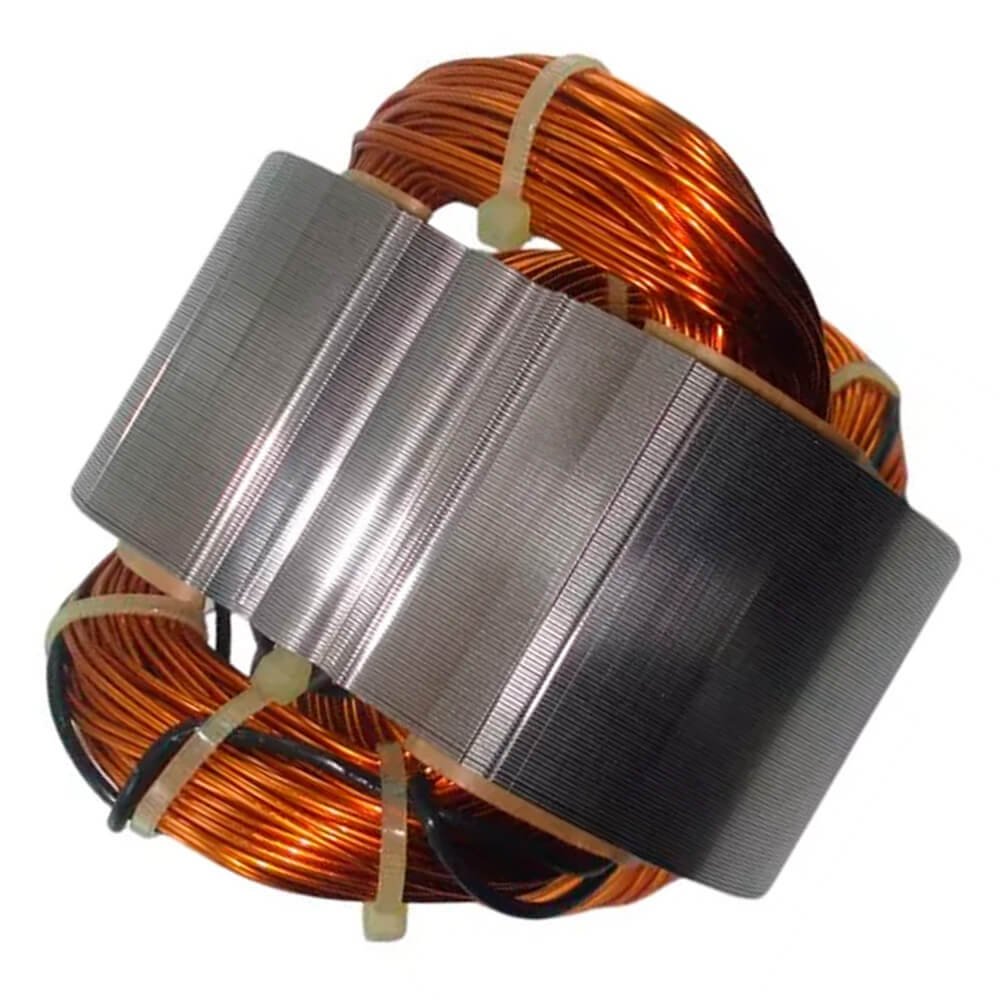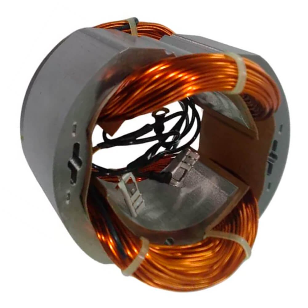Estator também conhecido como bobina de campo, usado em conjunto com induzido e escovas de carvão.