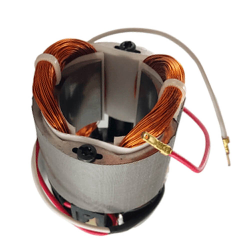 Estator também conhecido como bobina de campo, usado em conjunto com induzido e escovas de carvão.