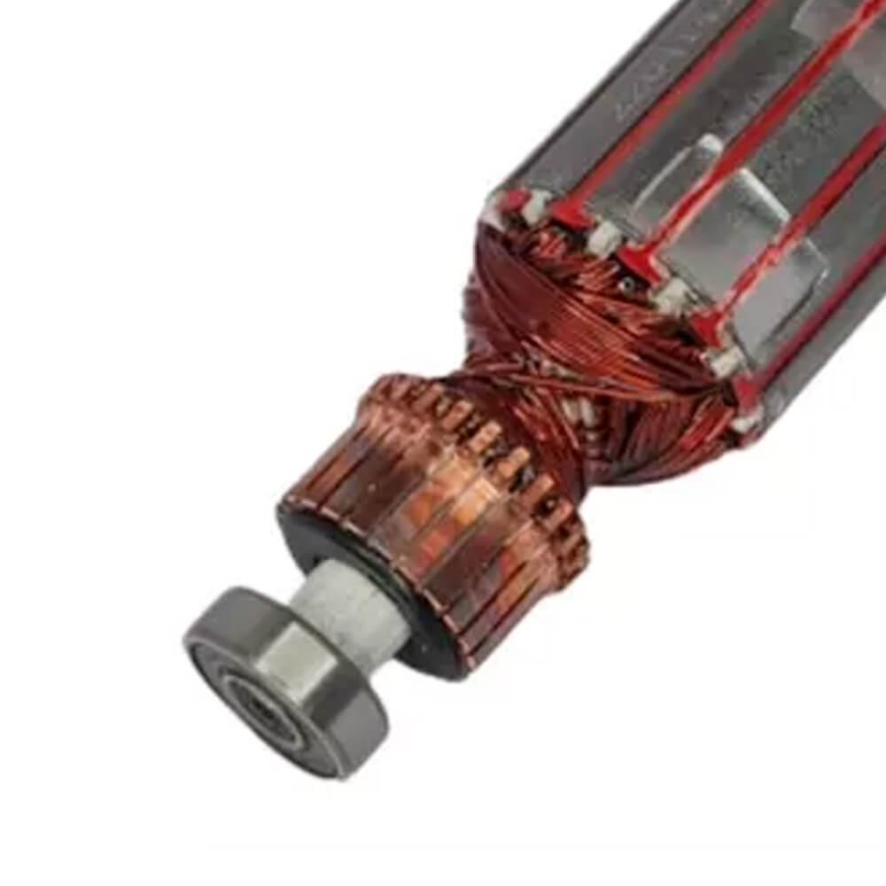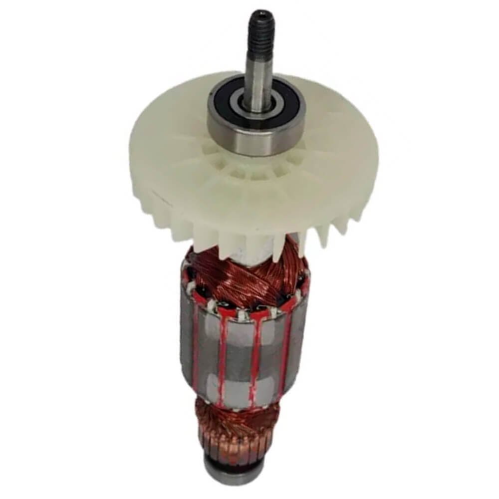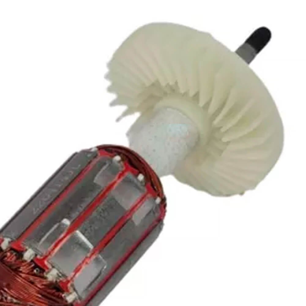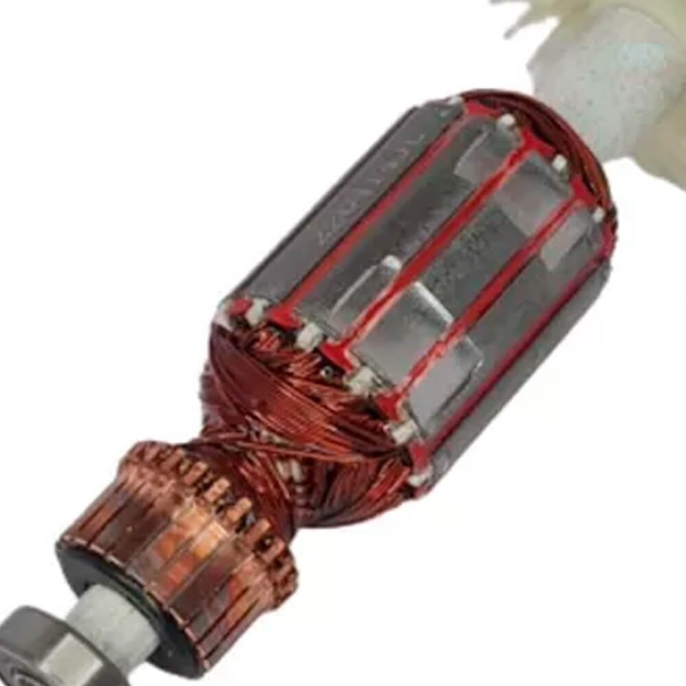 Induzido também conhecido como rotor, usado em conjunto com o estator ou bobina de campo, rolamentos e escovas de carvão.