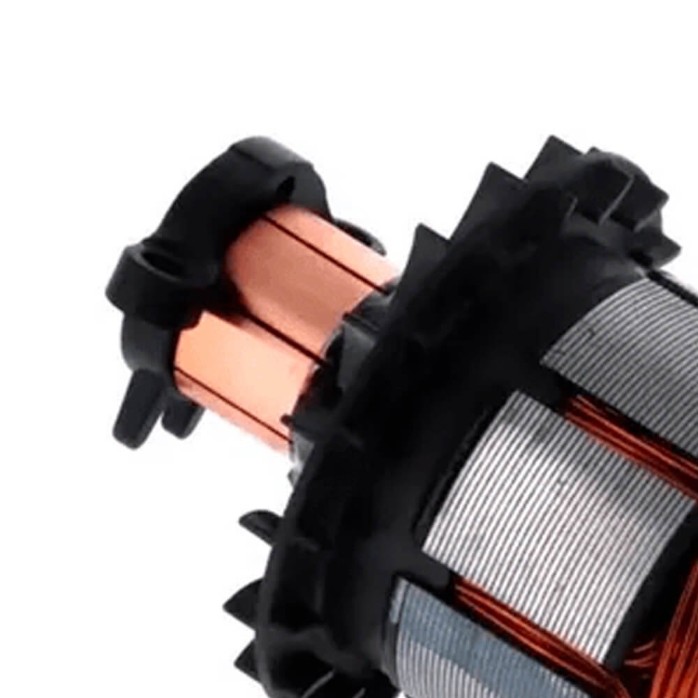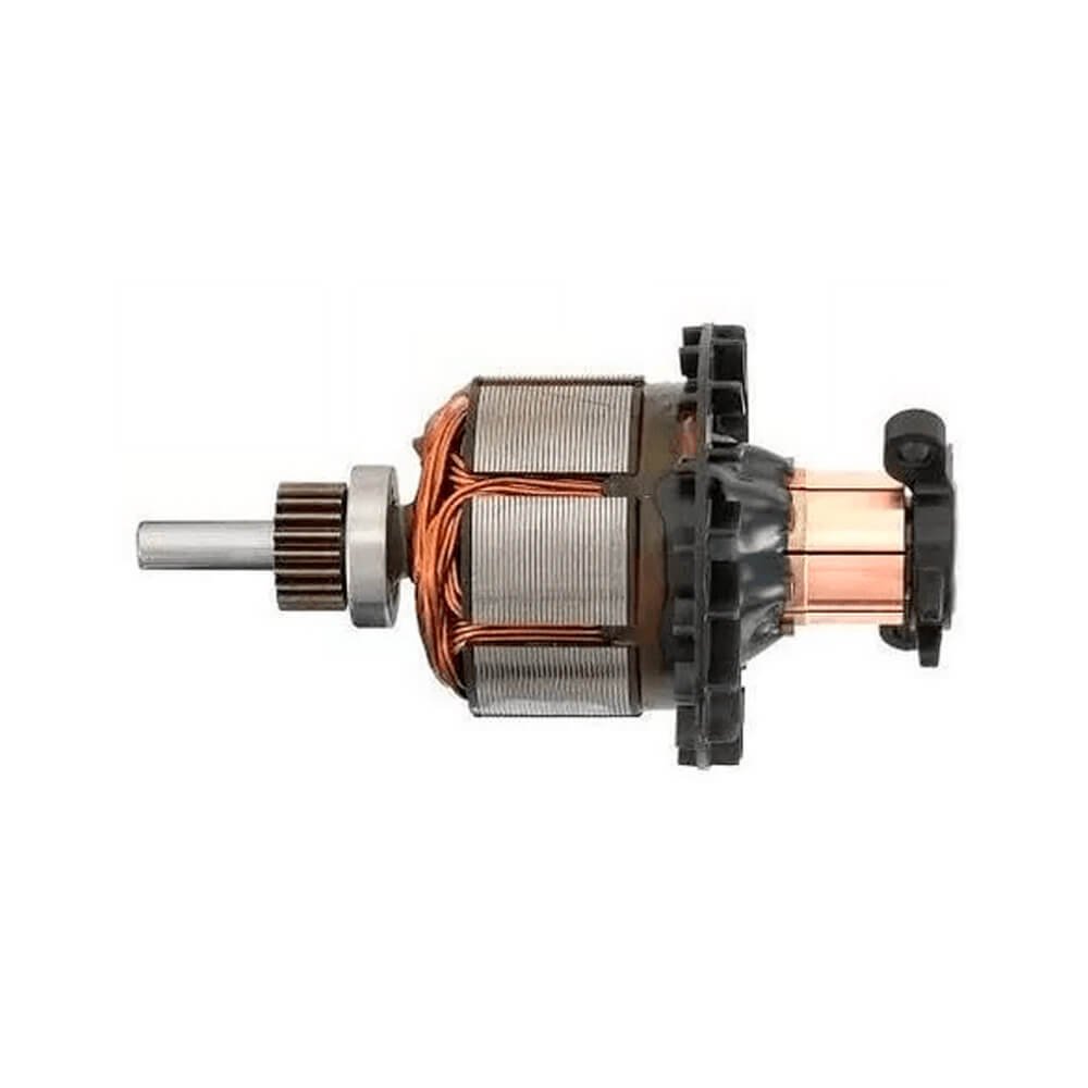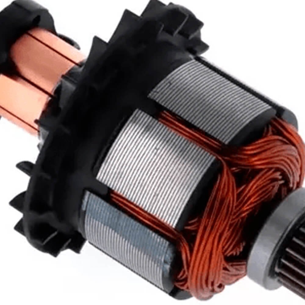 Induzido também conhecido como rotor, usado em conjunto com o estator ou bobina de campo e escovas de carvão.