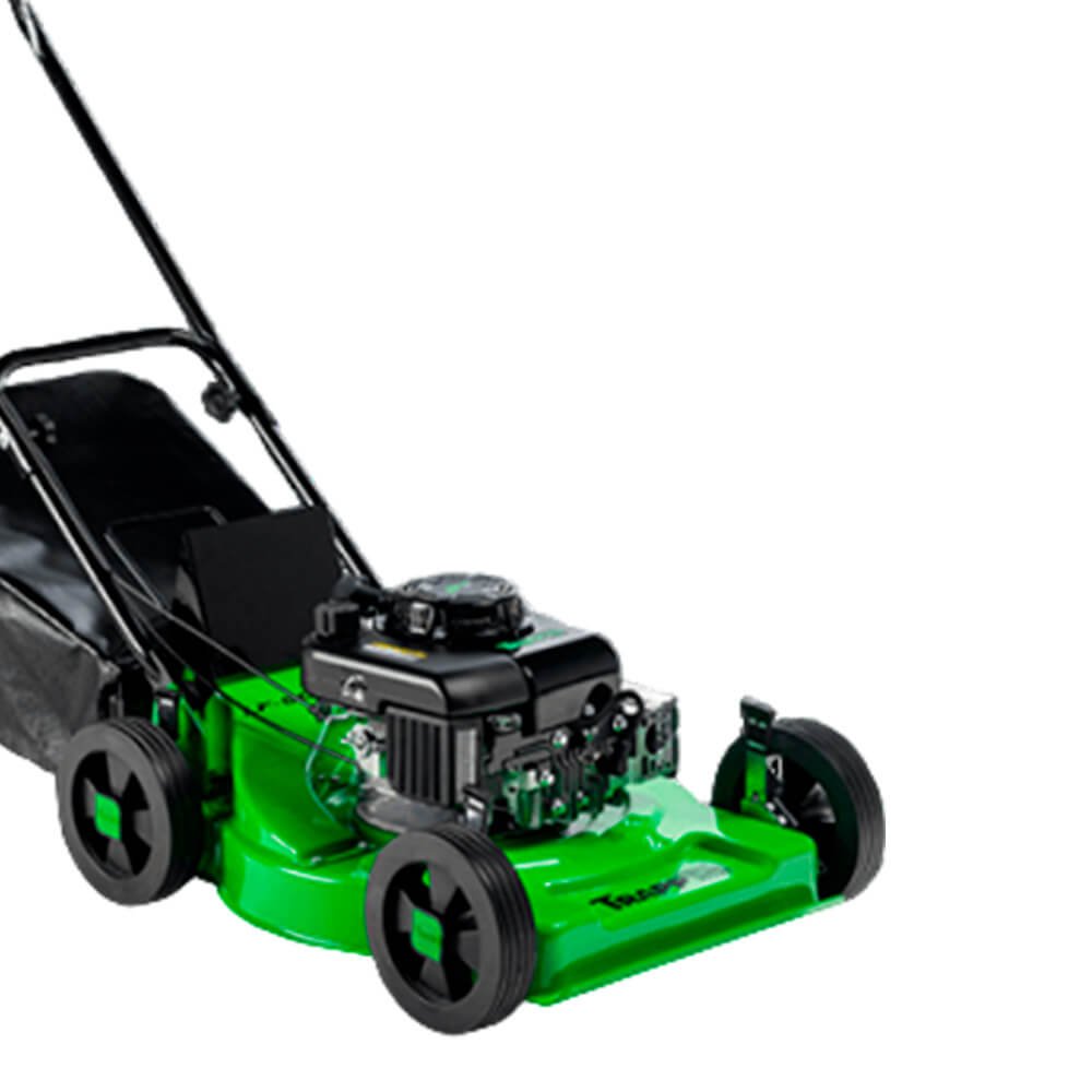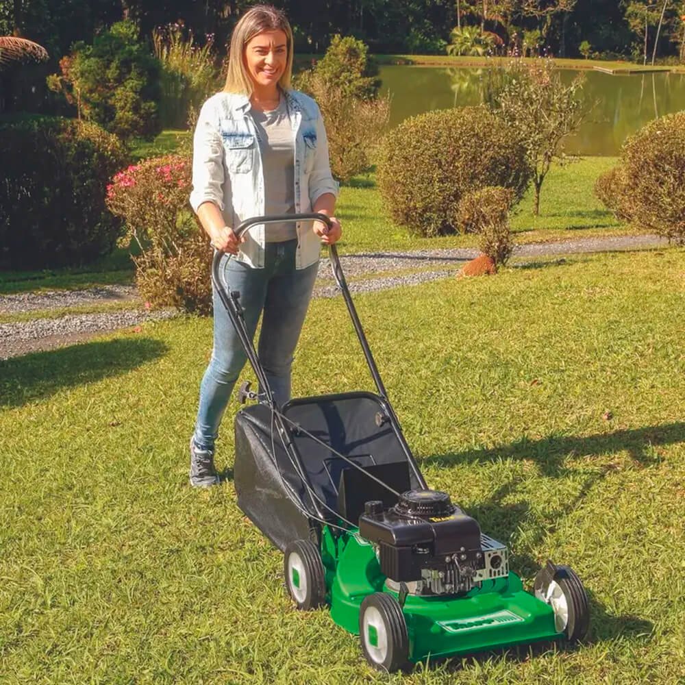 Recomendados para médias e grandes áreas de aproximadamente 800 m². O uso de cortadores de grama a gasolina torna mais prático o corte do gramado, sem o incômodo das extensões e tomadas elétricas. Equipado com afogador manual e válvula de combustível para facilitar a partida do motor. Possui bujão para facilitar a drenagem do óleo do cárter. Com restrição de uso em terrenos acidentados (inclinação máxima 15°). Cabo ergonômico para maior conforto do operador, dobrável, facilitando o transporte e armazenamento.