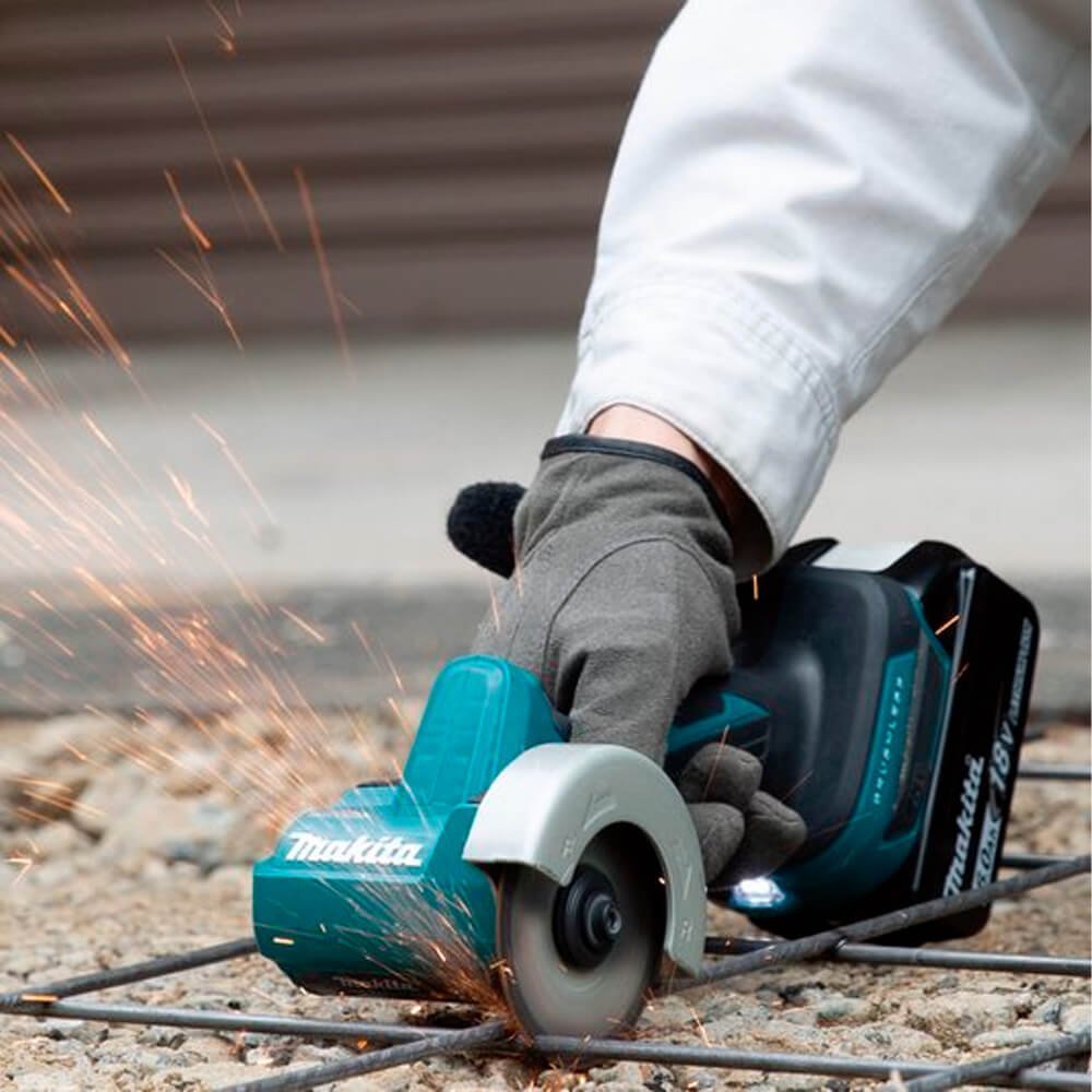 A Cortadora Compacta DMC300Rtj a Bateria 18V da Makita oferece maior versatilidade para cortes em diversos tipos de materiais.