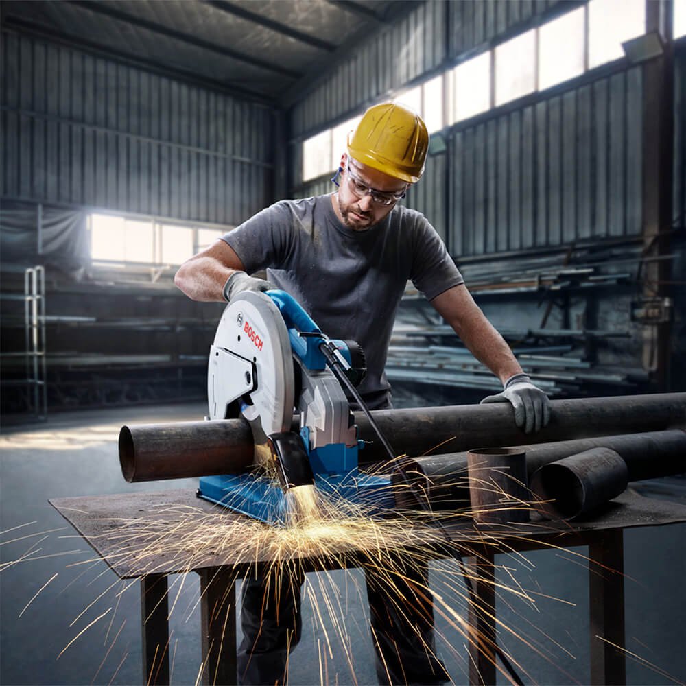 A proteção ajustável contra faíscas protege você contra faíscas. Com a GCO 230 Professional, você obtém potência, durabilidade e confiabilidade em uma única serra. Criada até mesmo para as aplicações mais difíceis, a GCO 230 Professional corta sem esforço todos os tipos de metal, incluindo tubos, barras redondas, perfis quadrados, hastes roscadas, trilhos de aço e muito mais.