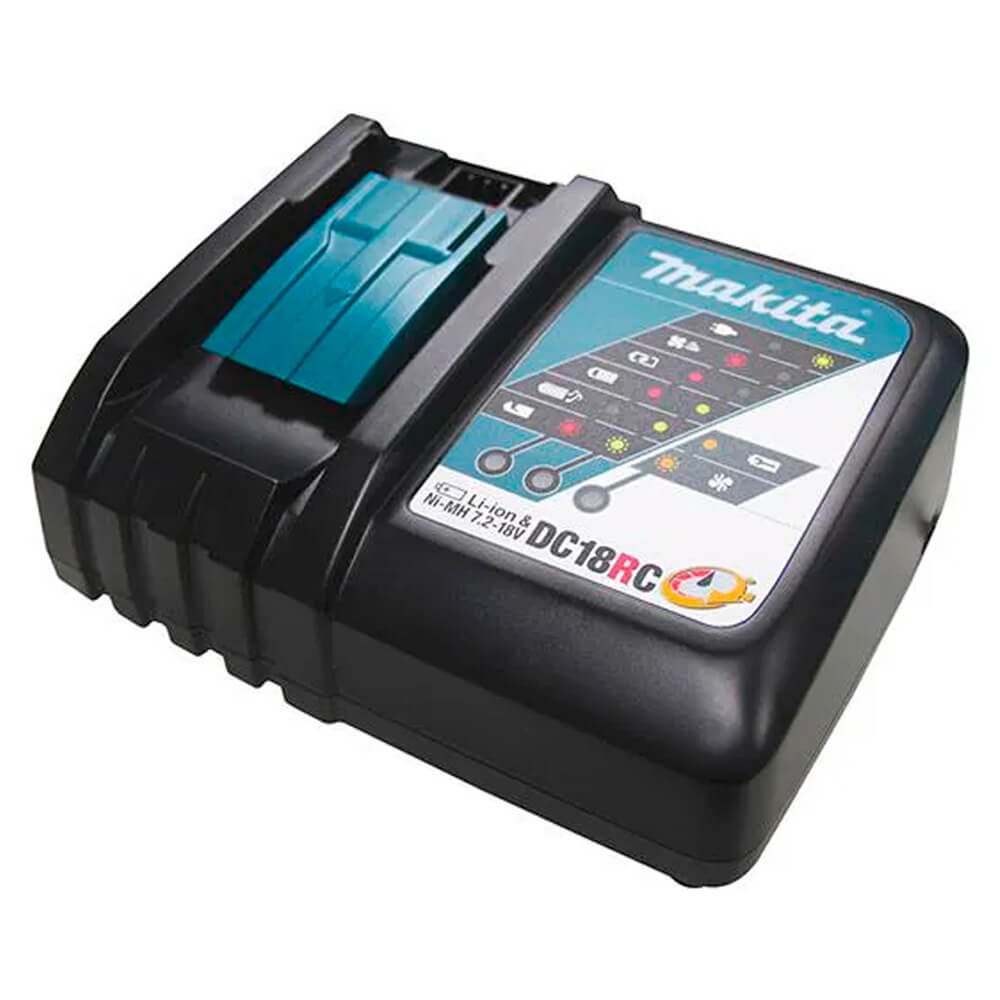 - 2 baterias 18V 5,0 Ah, carregador rápido, disco, chave allen e Mak-pac N°3.