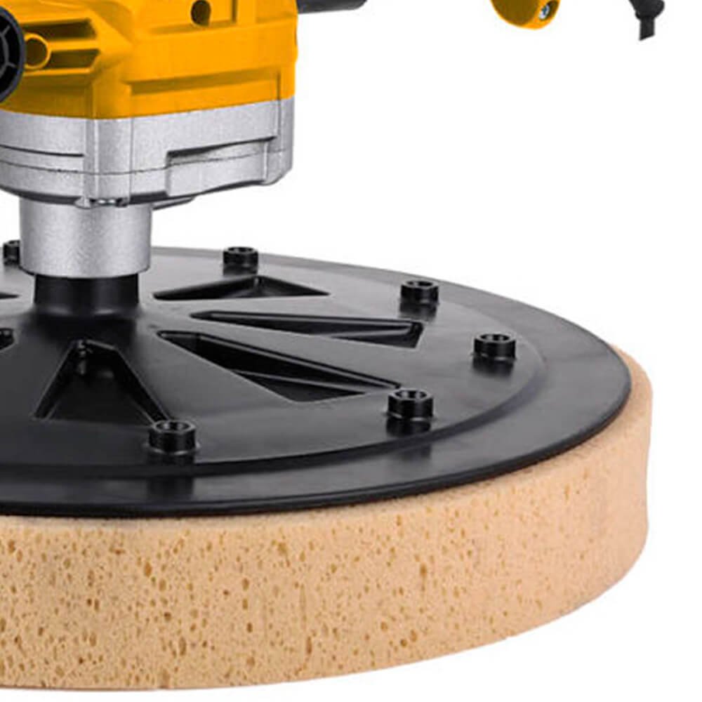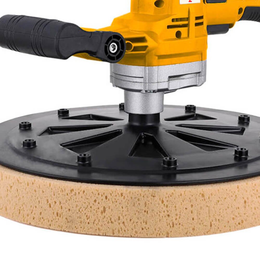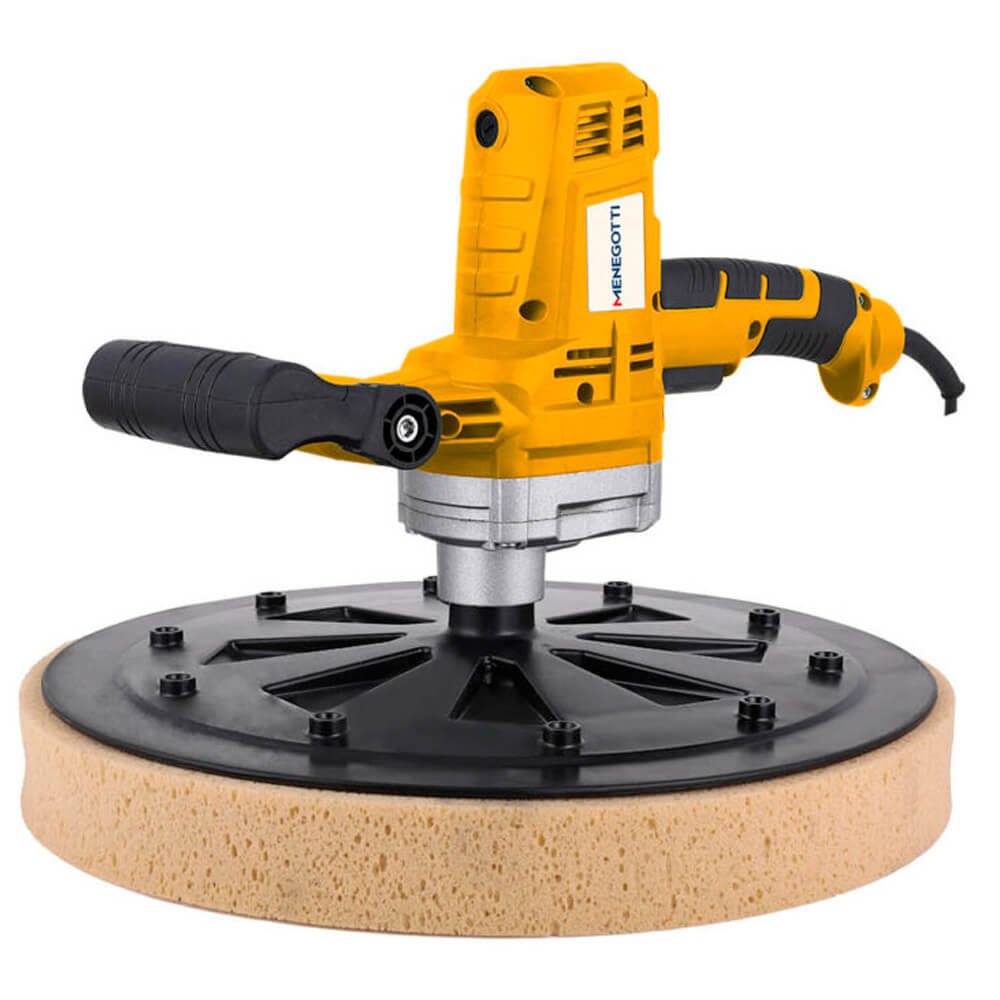 Equipamento projetado para alisamento de reboco, através de seus discos de polipropileno, ferro e esponja, e para lixamento de paredes e tetos.