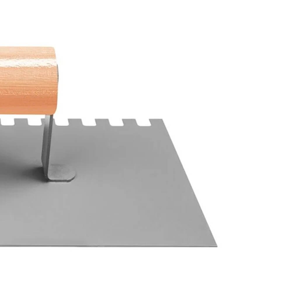 Além disso, a madeira recebe acabamento envernizado garantindo uma melhor apresentação do produto e um toque mais liso. Ela ainda possui dentes que são projetados para formar sulcos na massa, possibilitando um assentamento de lajotas e azulejos com muito mais qualidade e melhores resultados.