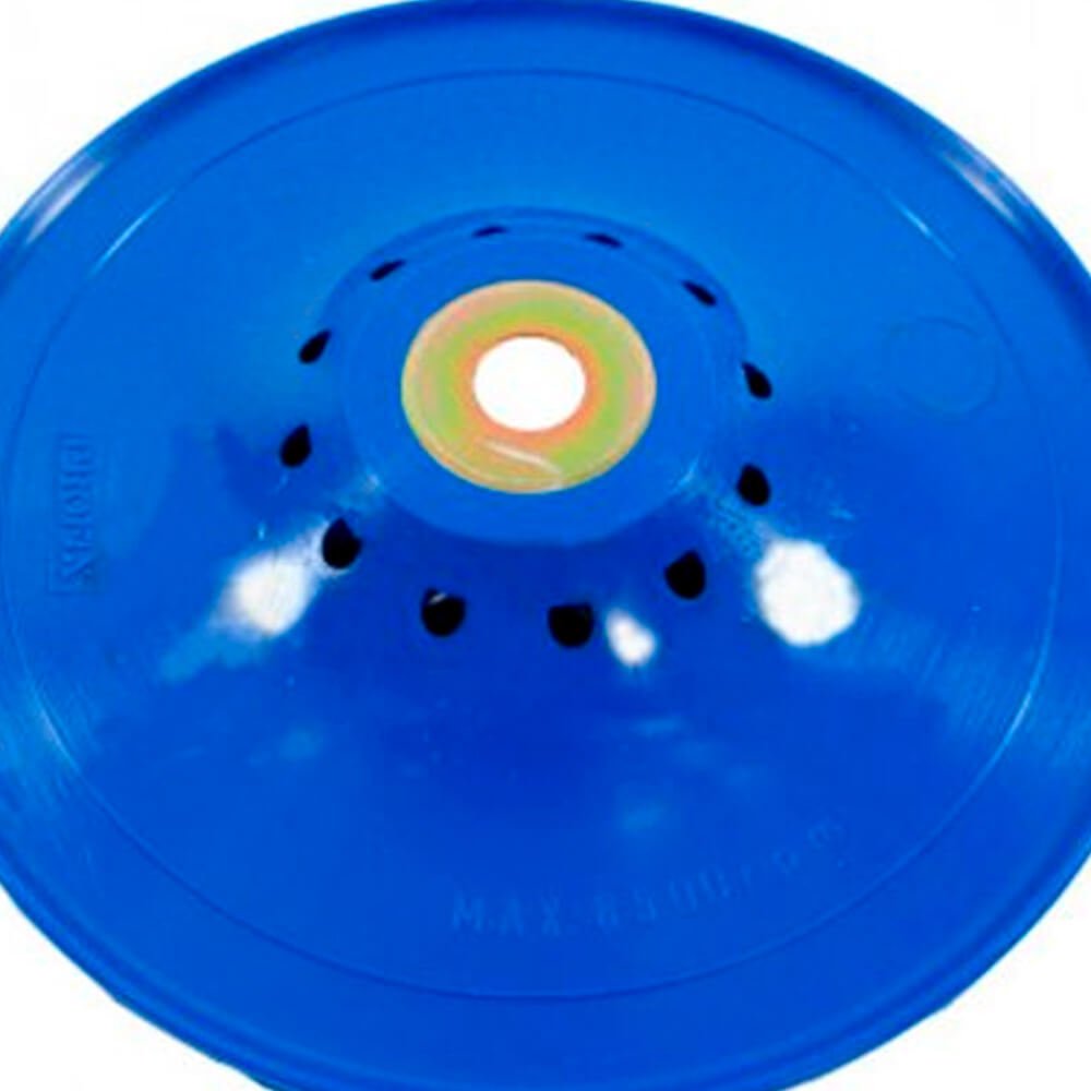 Disco de borracha com para utilização de lixas e boinas em furadeira. Com arruela central.
