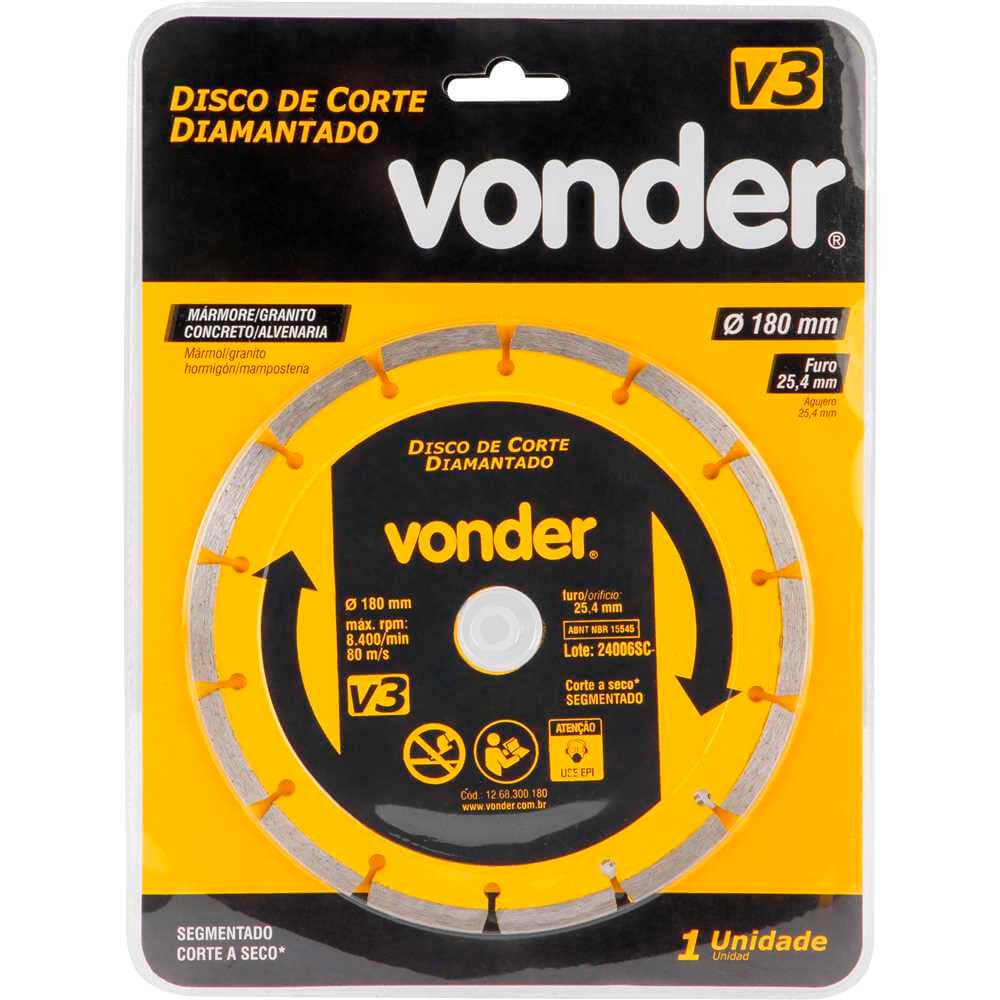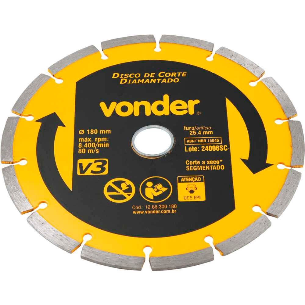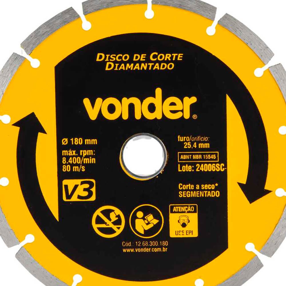 Disco de Corte Diamantado V3 180mm x 25,4mm - Vonder