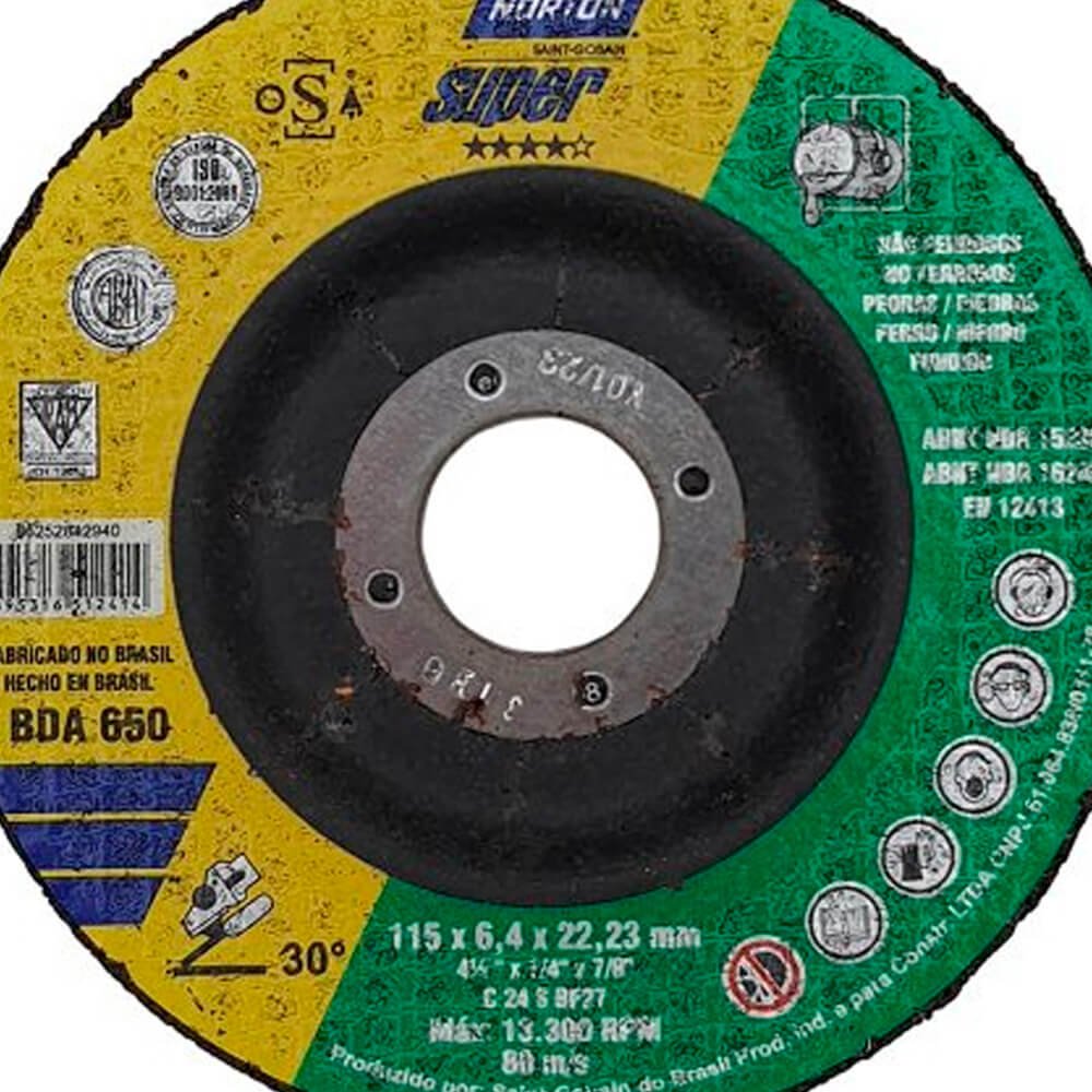 O Disco de Desbaste Norton, é indicado para retirar o excesso de objeto para dar um acabamento mais profissional, limpeza de superfície antes da solda, desbaste de cordão de solda, remoção de defeitos superficiais, imperfeições e rebarbas de peças fundidas. O produto prepara superfícies para pintura ou revestimento, dando um melhor aspecto no produto final do trabalho realizado. Pode ser utilizado por usuário em geral em máquinas portáteis ou de bancada.