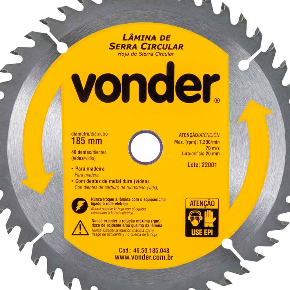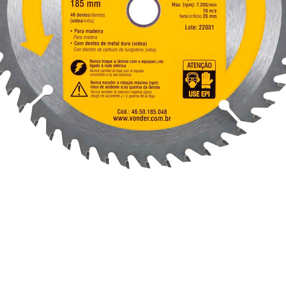 Disco de Serra Circular Metal Duro/ Vídea 185mm x 20mm 48 Dentes - Vonder