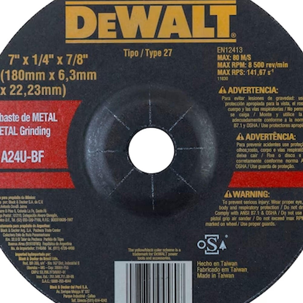 Disco Desbaste 7" x 1/4" x 7/8" - Dewalt