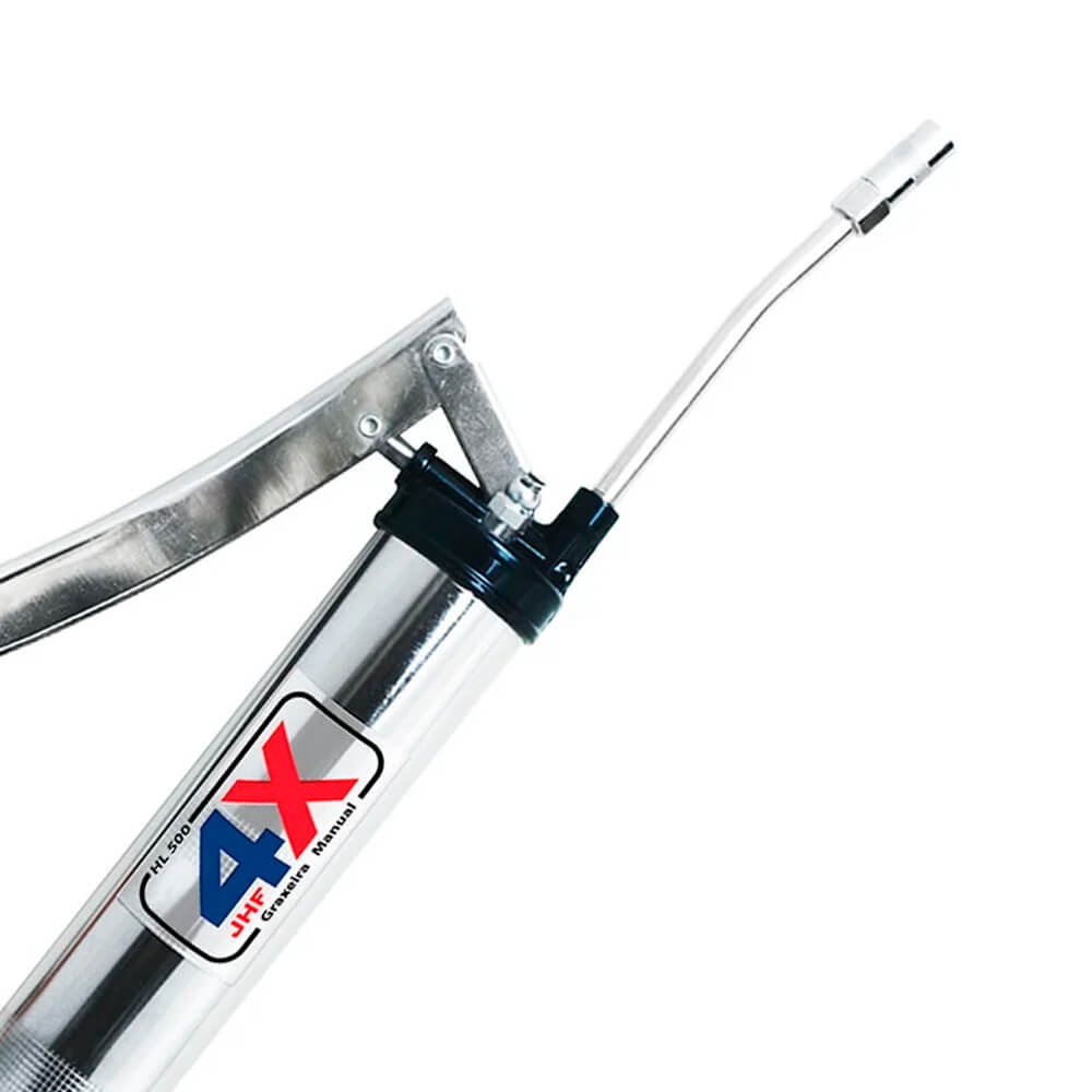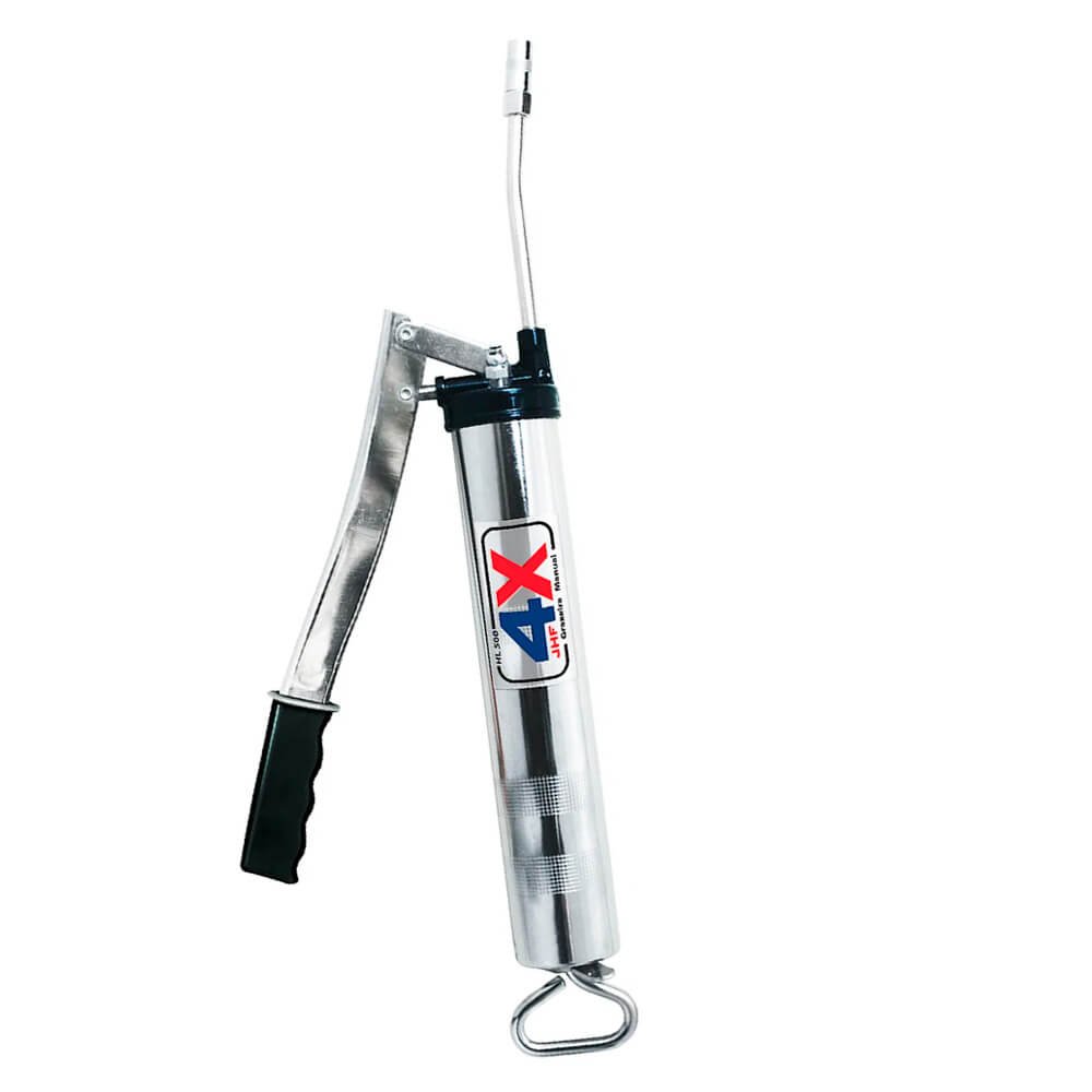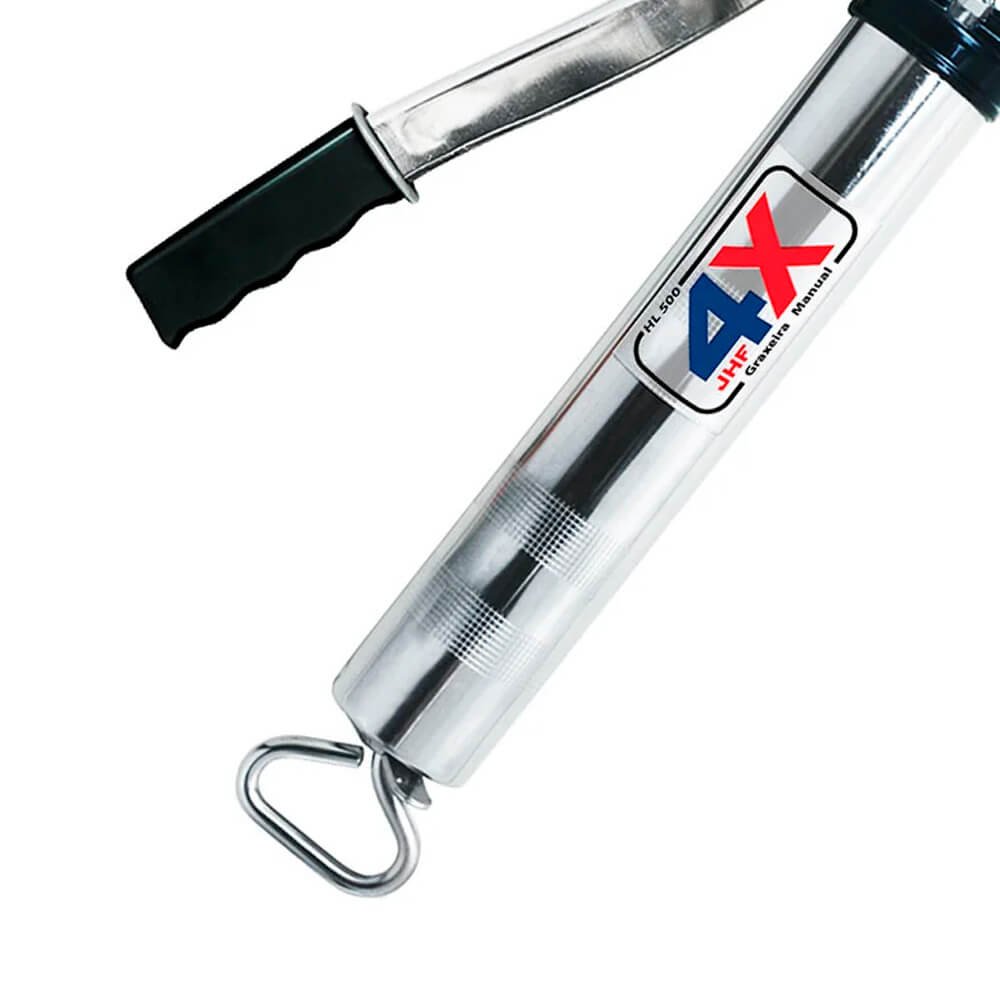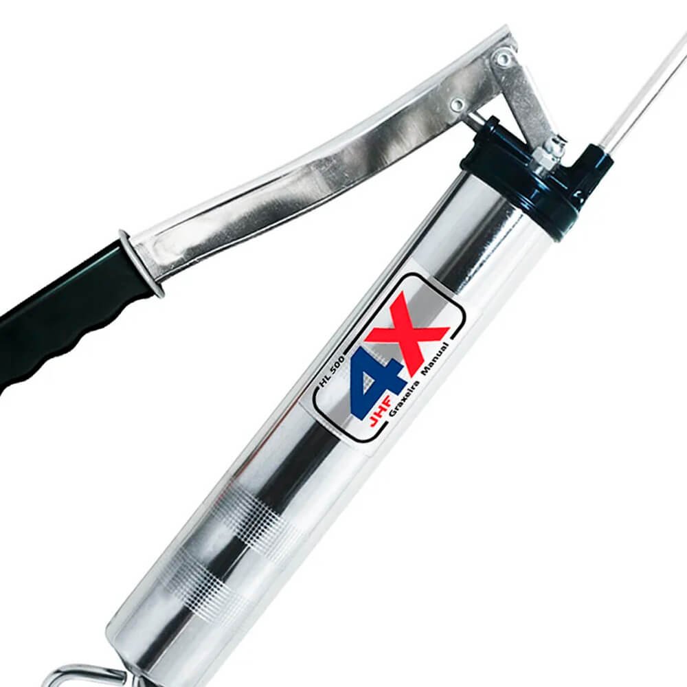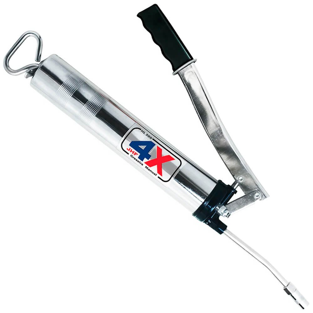 Versátil e de fácil operação, com capacidade para 0,5 Kg, a graxeira manual HL500 é utilizada para lubrificação de eixos, molas, e peças em geral que exigem lubrificação para seu bom funcionamento.