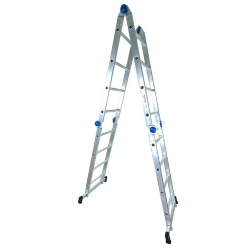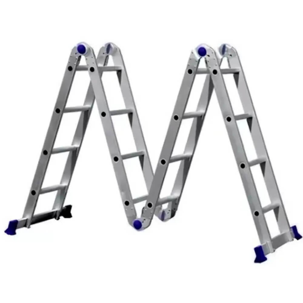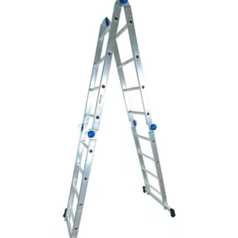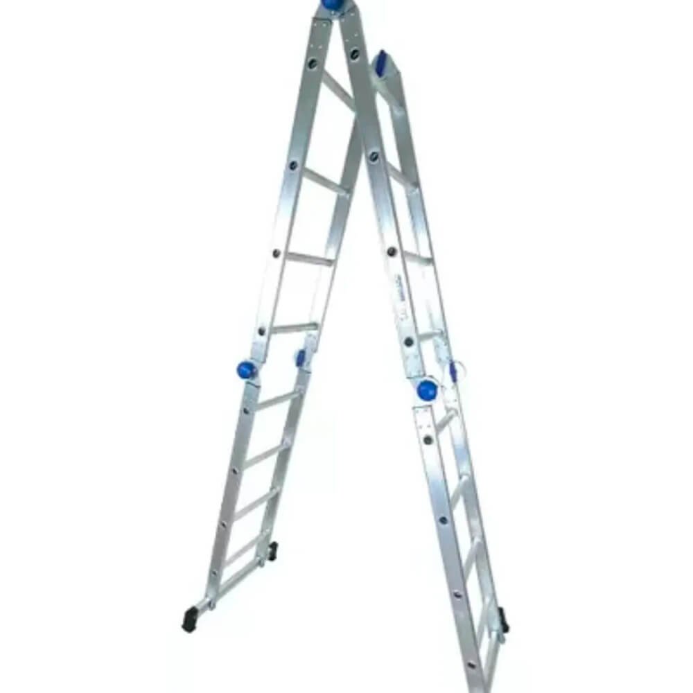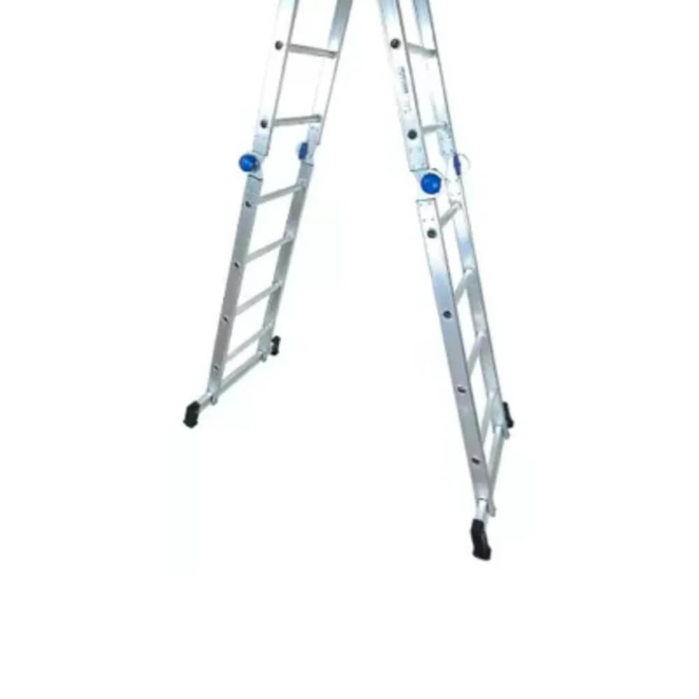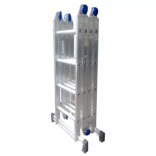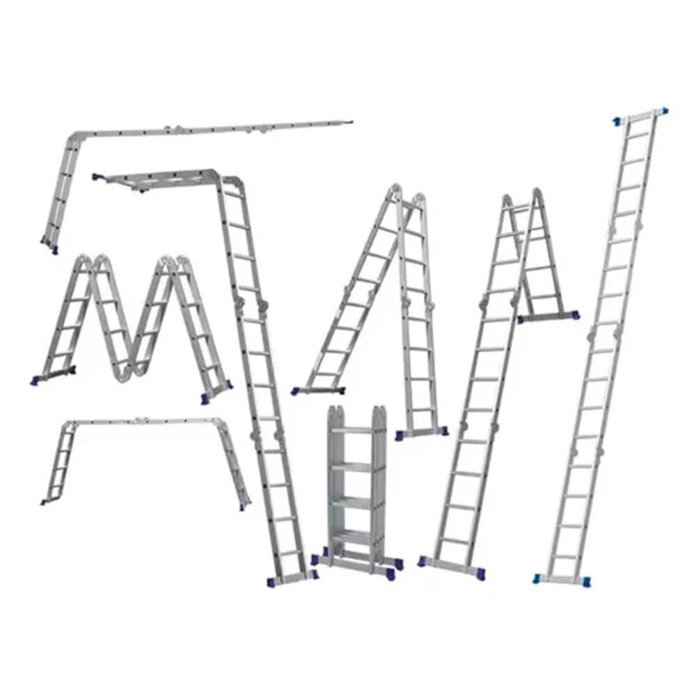 Escada Multiuso com 16 degraus feita de alumínio, produto bastante qualificado. É a solução perfeita para quem busca versatilidade, segurança e resistência em um único equipamento. Fabricada em alumínio de liga especial super resistente, essa escada suporta até 150kg e permite ser utilizada em até 13 diferentes posições, adaptando-se a diversos tipos de serviços, tanto residenciais quanto profissionais.