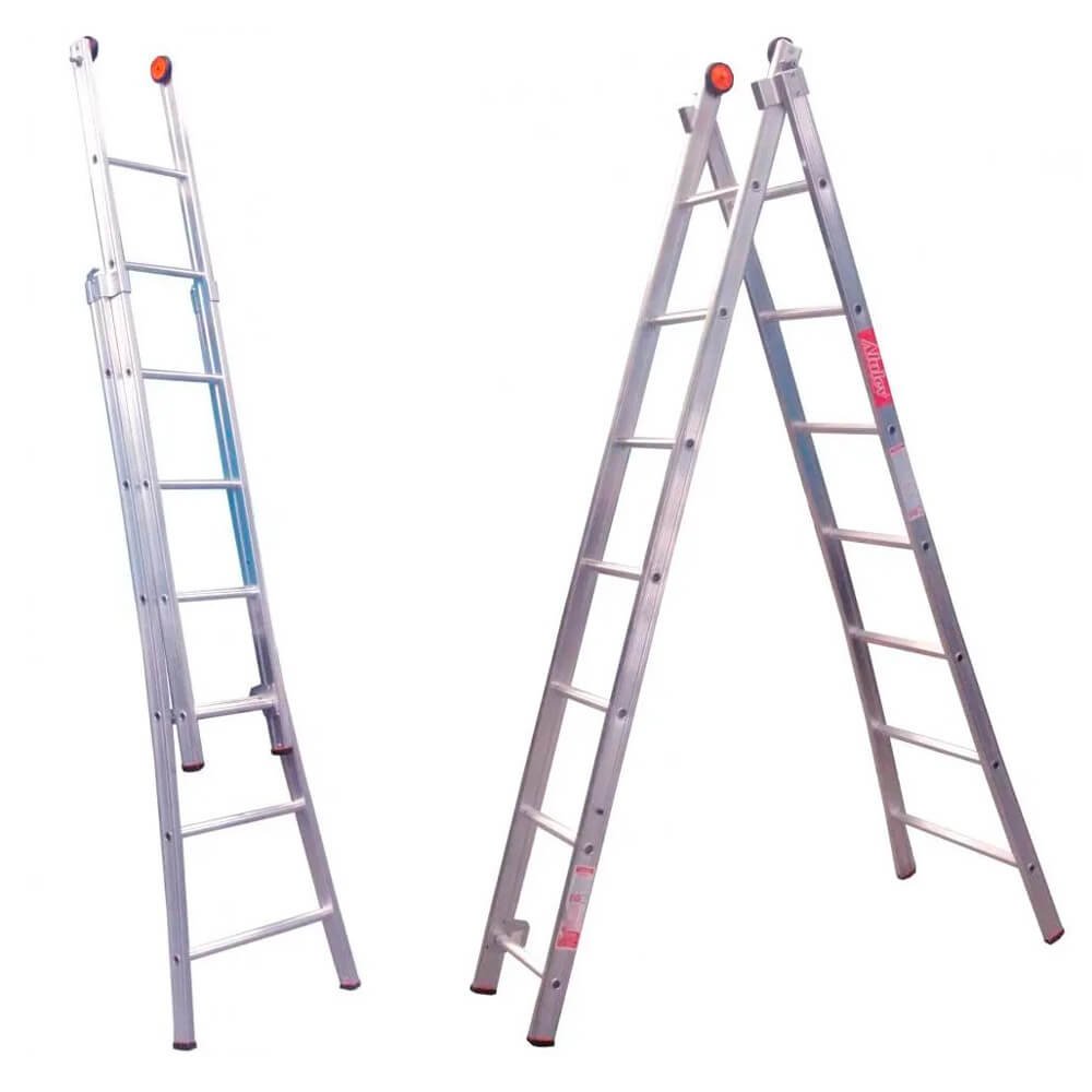 Fabricada em alumínio para facilitar o manuseio e utilização com dobradiças em aço e antiderrapante, além de possibilitar grande extensão, oferecendo degraus mais largos possibilitando maior segurança e ergonomia. Oferece três modos de utilização, os quais podem se adequar a sua necessidade: extensível, aberta e simples. Auxiliando assim na realização de diversas tarefas. Possui rodas que facilitam o uso, sistema de extensão com encaixe de travamento que proporciona maior segurança e abertura cônica dos pés e sapatas antiderrapantes, garantindo sua segurança e estabilidade.