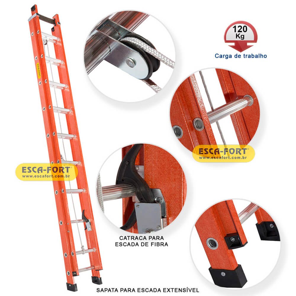 Escada Extensível Fibra de Vidro - Esca-Fort