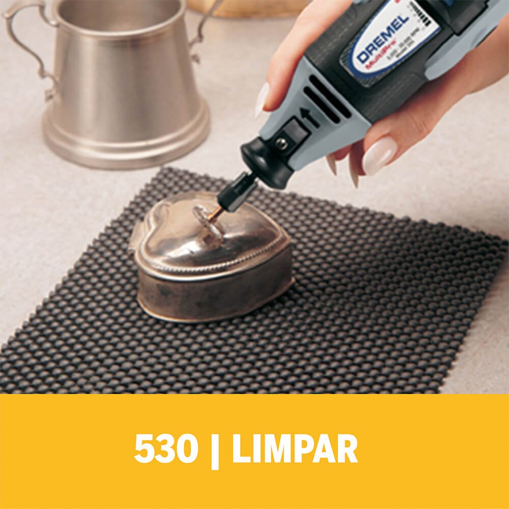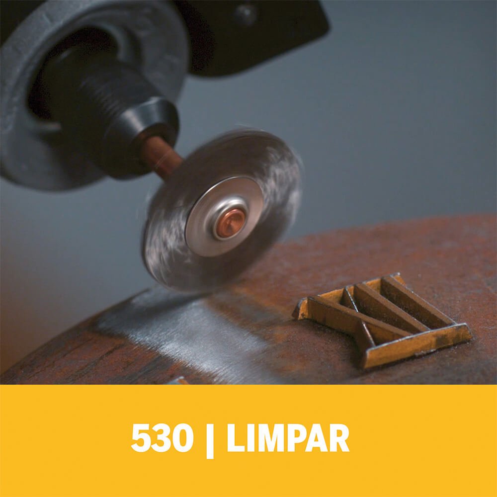 - Para limpar, remover rebarbas e fazer o acabamento da superfície de materiais resistentes, como aço inoxidável e prata.