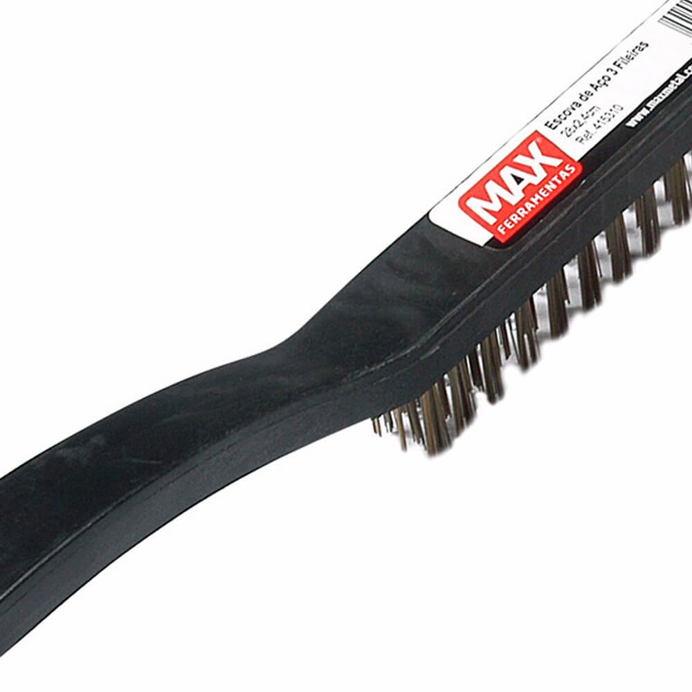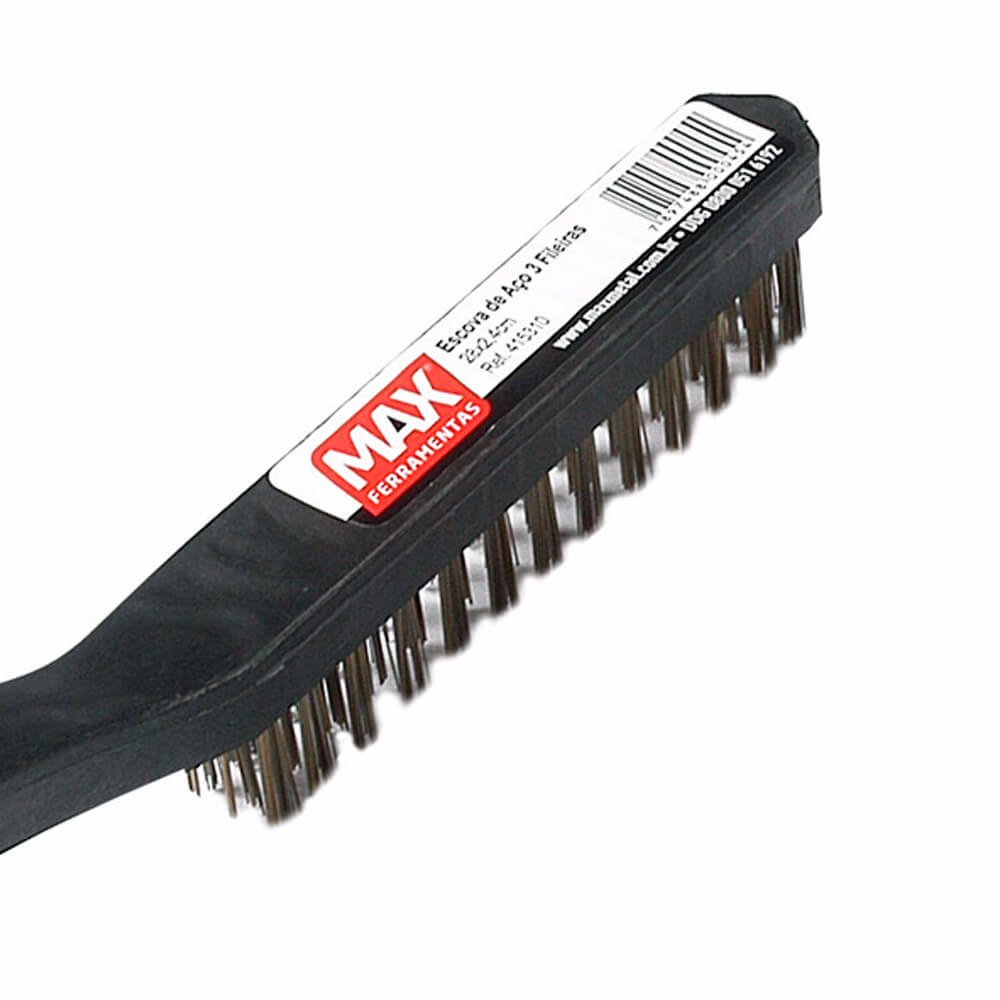 Escova de Aço Plástica com 3 Fileiras - Max Ferramentas