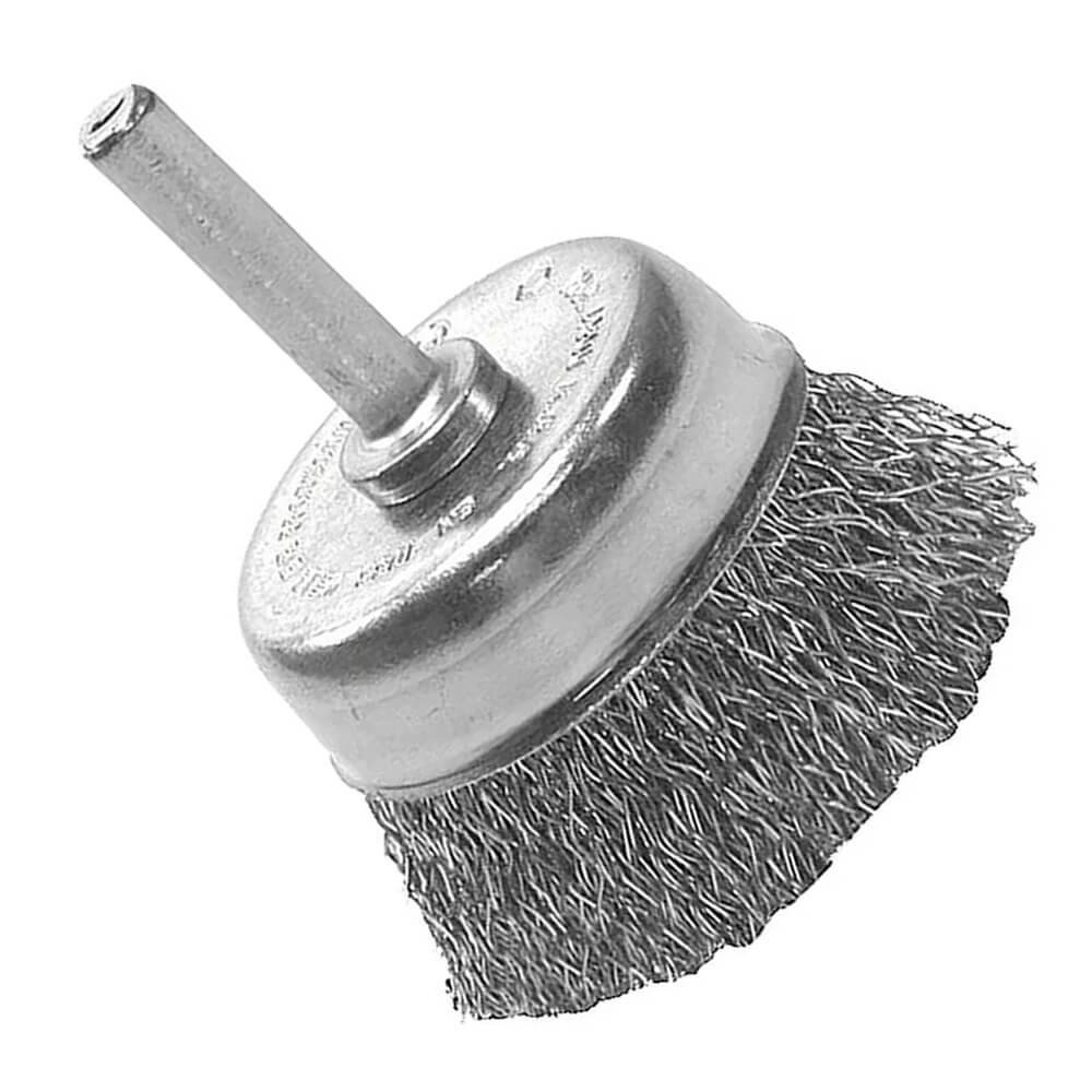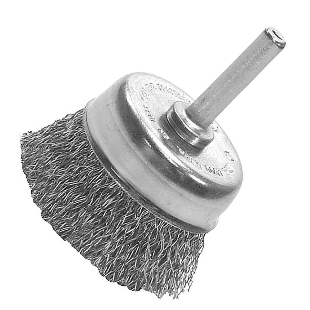 A Escova Hobby Copo Ondulada é uma escova, feita em aço carbono, indicada para uma gama abrangente de aplicações, como por exemplo, remoção de pintura, ferrugem, rebarbar, respingos de solda, e etc. Com haste de 6mm, ela deve ser utilizada em furadeiras, durante operações hobbistas.
