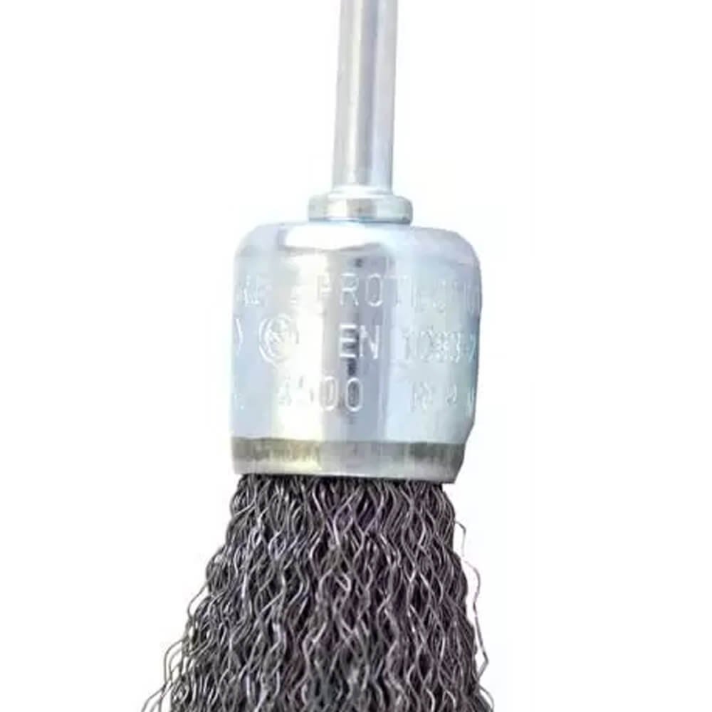 A Escova Hobby Pincel Ondulada é produzida em aço carbono, indicada para limpeza em locais de difícil acesso, orifícios, tubulações, polimento e limpeza de moldes, eliminação de rebarbas. Utilizadas em furadeiras e máquinas pneumáticas de baixa rotação.