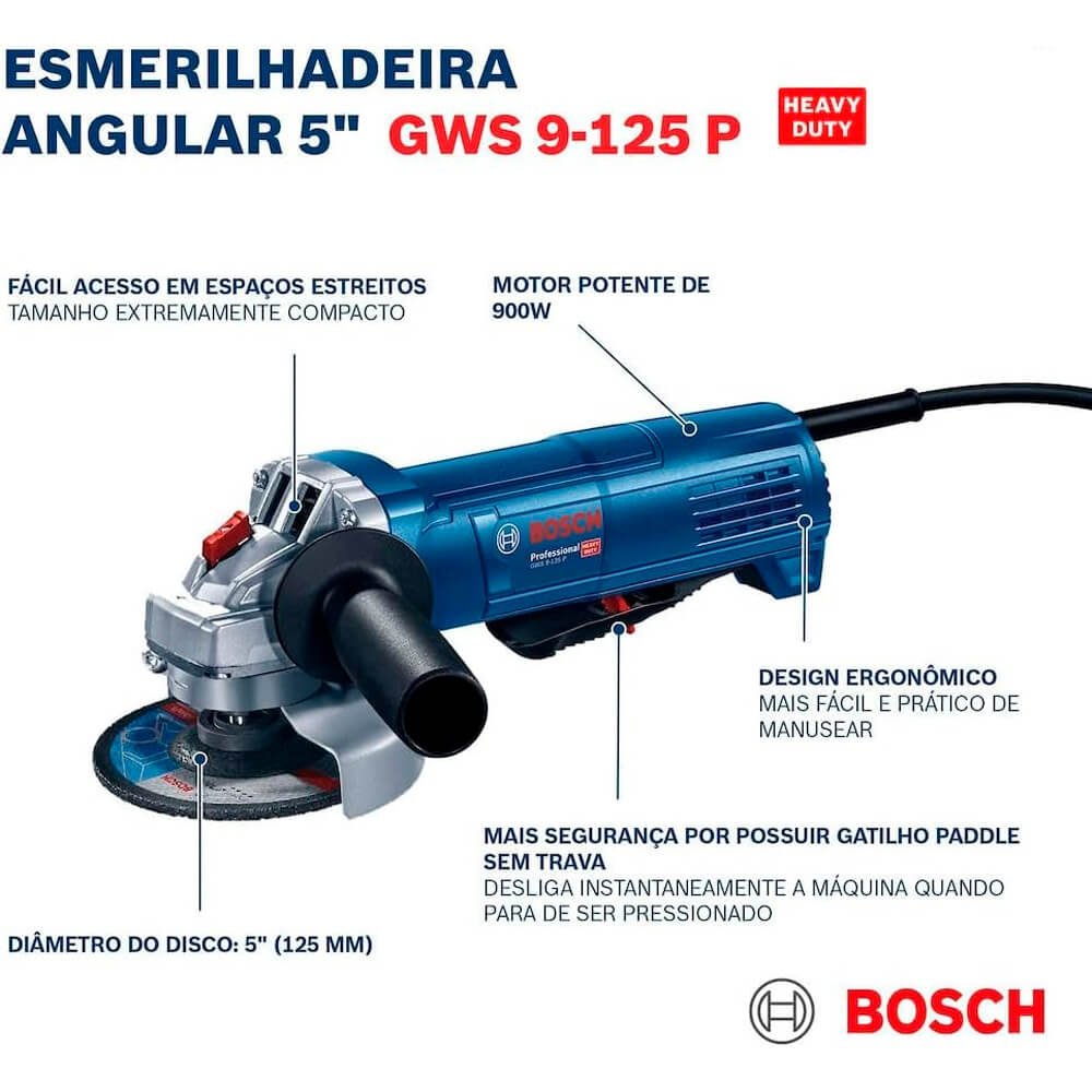 Esmerilhadeira Angular 5" GWS 9-125P 127V 900W - Bosch