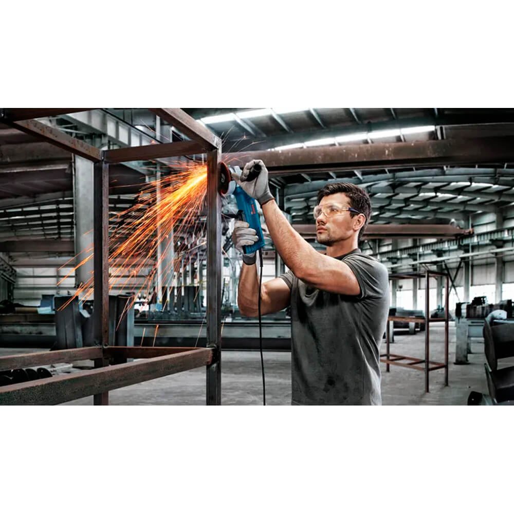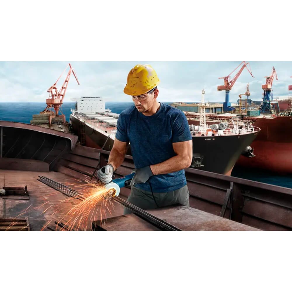 A GWS 9-125 P Professional oferece maior proteção do usuário, graças ao interruptor de pá PROtection que corta instantaneamente a corrente para a máquina quando o interruptor é liberado. Com um motor altamente eficiente de 900 W, esta esmerilhadeira angular proporciona uma experiência de corte e desbaste superior, bem como um melhor manuseio graças a seu design ergonômico em forma de pá e seu tamanho reduzido da empunhadura.