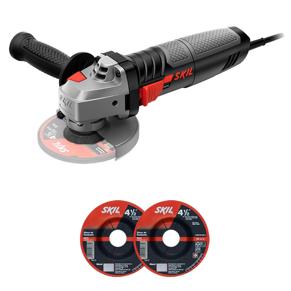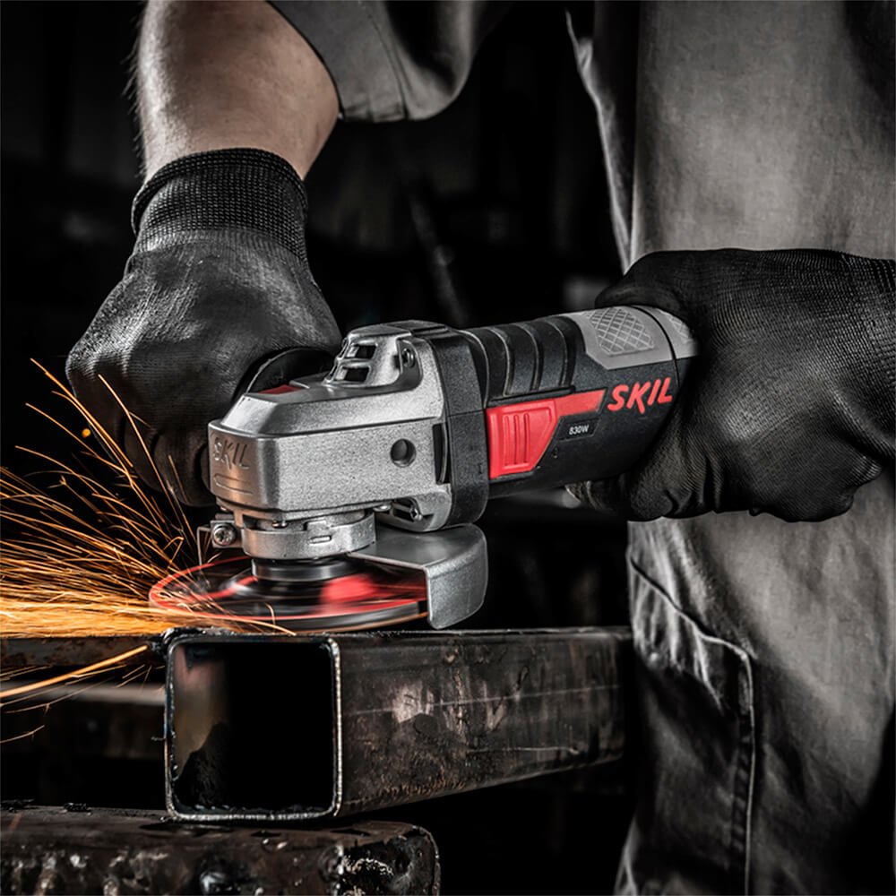 A Esmerilhadeira Angular Skil 9004, possui 830 Watts de potência e foi desenvolvida para cortes e desbastes em diversos materiais - sempre utilize o acessório correto - com discos de 4 1/2", para garantir maior durabilidade as engrenagens tem dentes helicoidais e é 100% rolamentada,além do interruptor liga/desliga ser selado contra pó. A capa de proteção de 4 1/2" - 115 milimetros com sistema de fixação por meio de parafuso garante que a capa não se desloque em caso de rompimento do disco dando assim maior segurança ao operador da ferramenta. Graças a seu design ergonomico - corpo emborrachado e punho auxiliar com angulação permite trabalhos com menor fadiga para o usuario, ela é compacta e leve - pesa apenas 2,0 Kg, facilitando assim aplicações em locais de menor tamanho e de difícil acesso. A Esmerilhadeira Skil 9004 é indicada para o profissional autonomo e conta com 2 anos de garantia. Este modelo é fornecido com: 1 Chave de aperto, 1 Porca de aperto, 1 Flange de apoio, 1 Capa protetora, 1 Punho auxiliar, 5 Discos em Caixa de papelão.