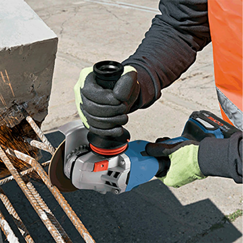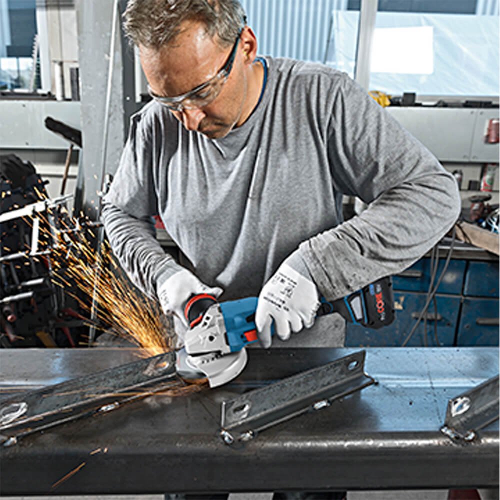 Ela é adequada para desbastar e cortar metal. Ela é compatível com todas as baterias e carregadores de 18 V Bosch Professional (Professional 18V System) - Potência máxima com ProCORE18V = 8,0 Ah - bem como com as multifixações para coleta de poeiras GDE 115/125 FC-T Professional e GDE 125 EA-T Professional.