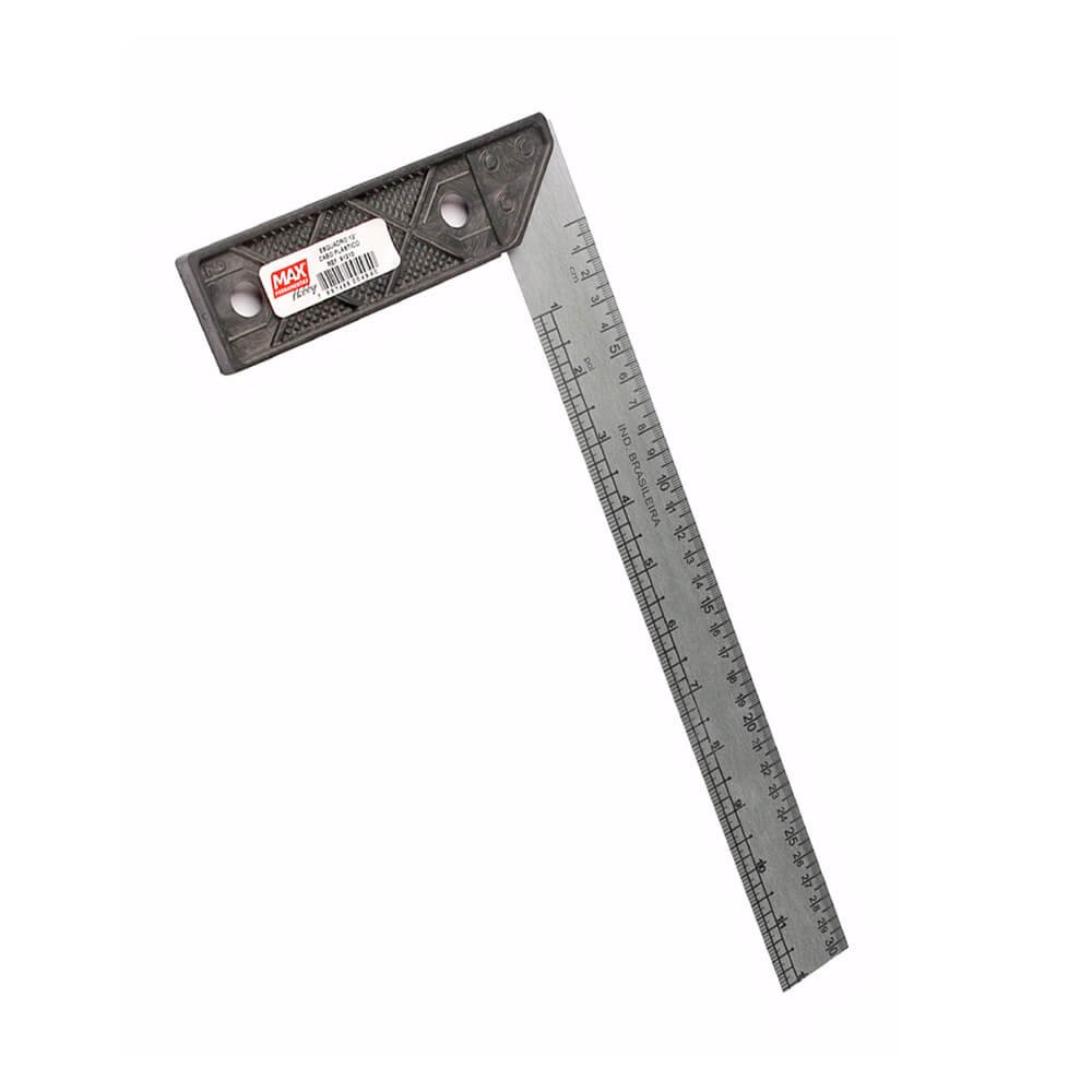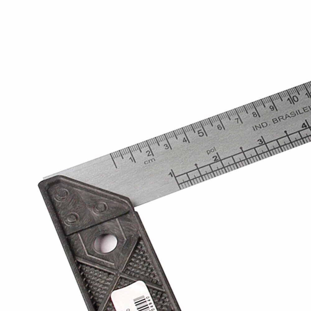 Esquadro de 14" é feito de aço com cabo em material plástico de alta resistência. Feito com cabo plástico, leve e com excelente resistência à oxidação. É utilizado na carpintaria e em construções para criar um ângulo reto. Ajuda a determinar ângulos de 45 e 90 graus e facilita o uso preciso de serras.