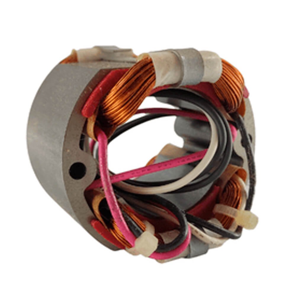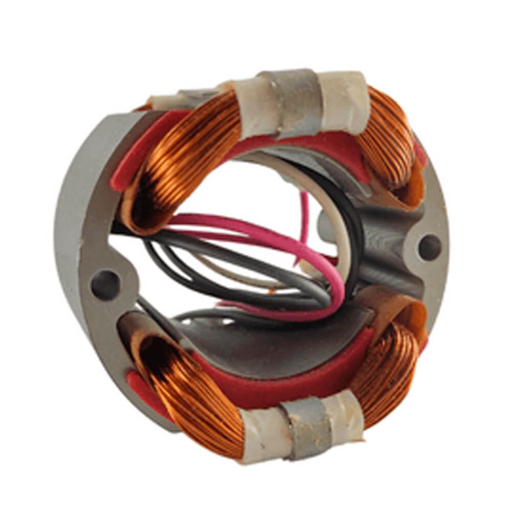 Estator também conhecido como bobina de campo, usado em conjunto com induzido e escovas de carvão.