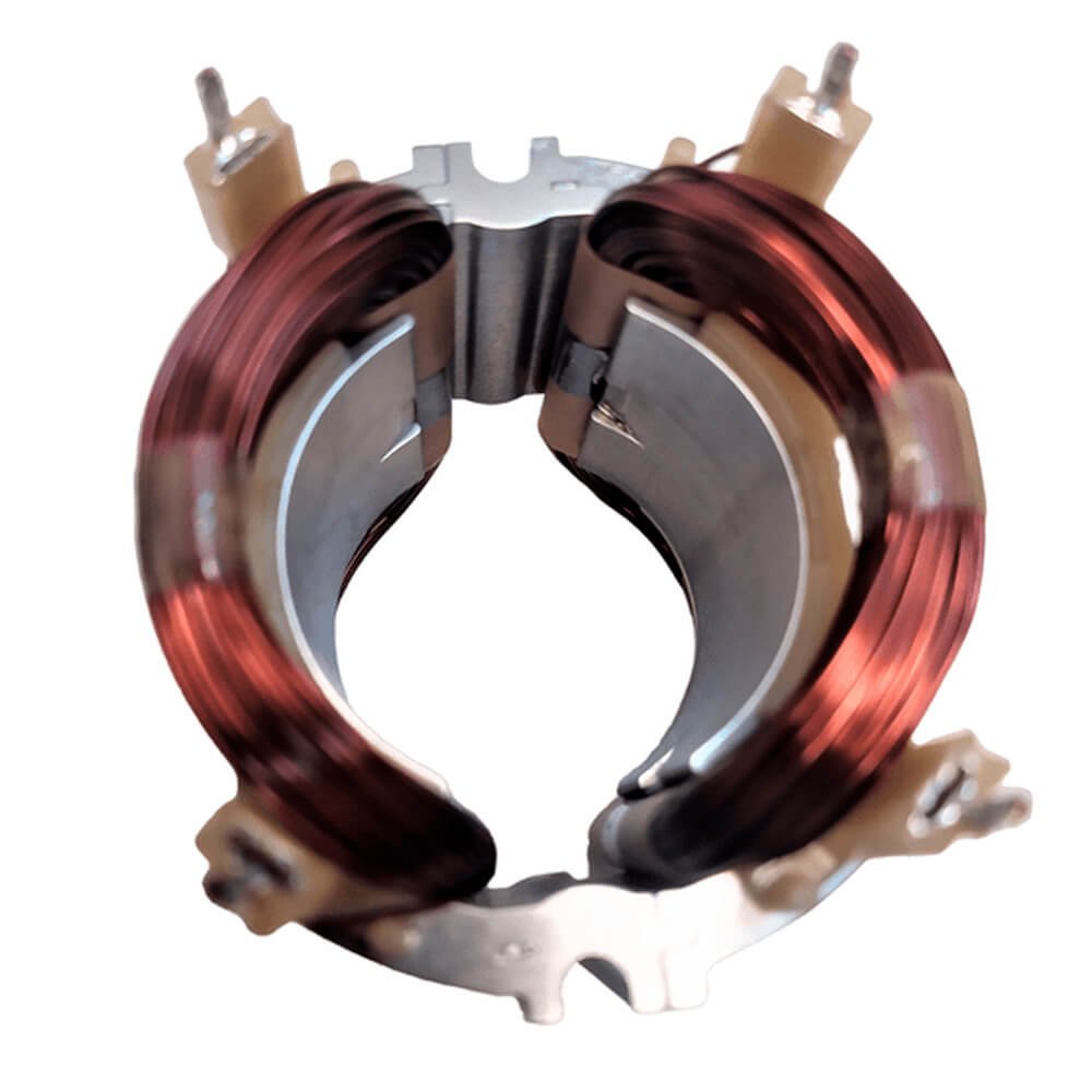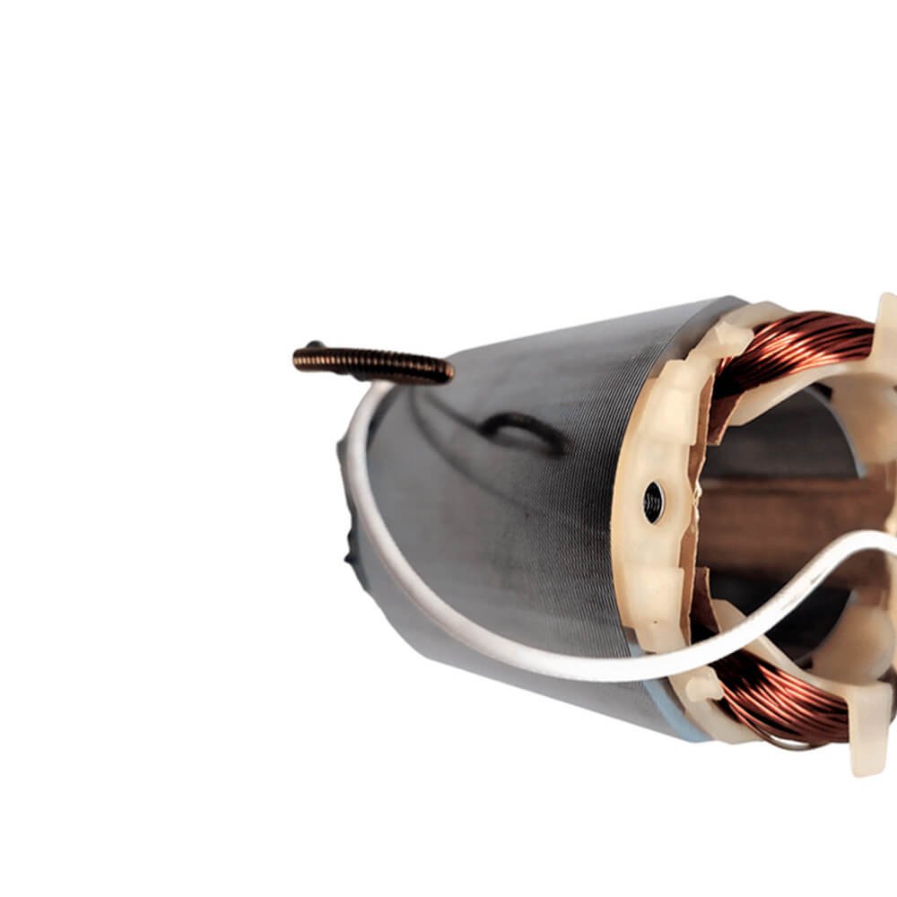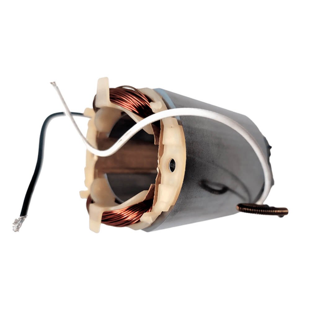 Estator também conhecido como bobina de campo, usado em conjunto com induzido e escovas de carvão.