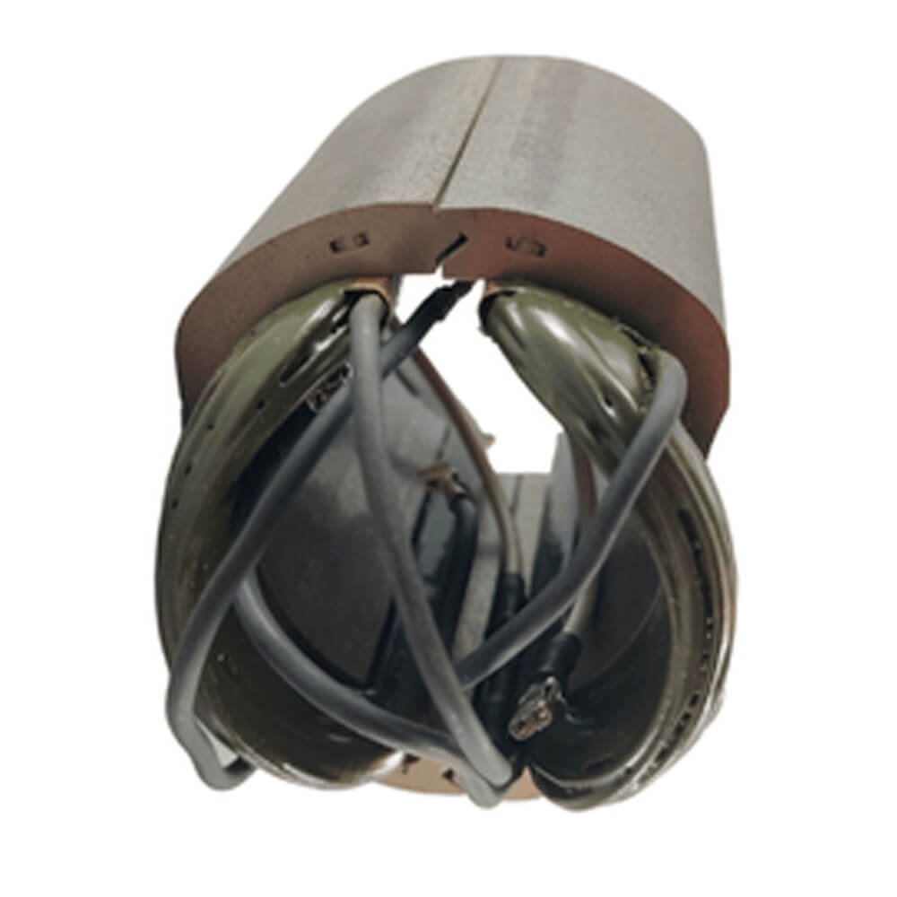 Estator também conhecido como bobina de campo, usado em conjunto com induzido e escovas de carvão.