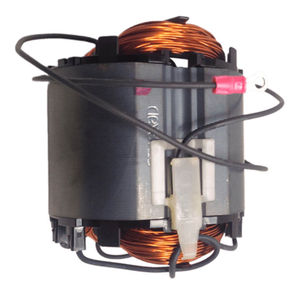 Estator também conhecido como bobina de campo, usado em conjunto com induzido e escovas de carvão.