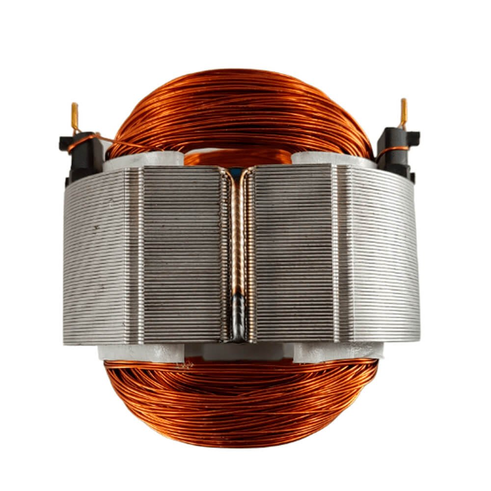 Estator também conhecido como bobina de campo, usado em conjunto com induzido e escovas de carvão.