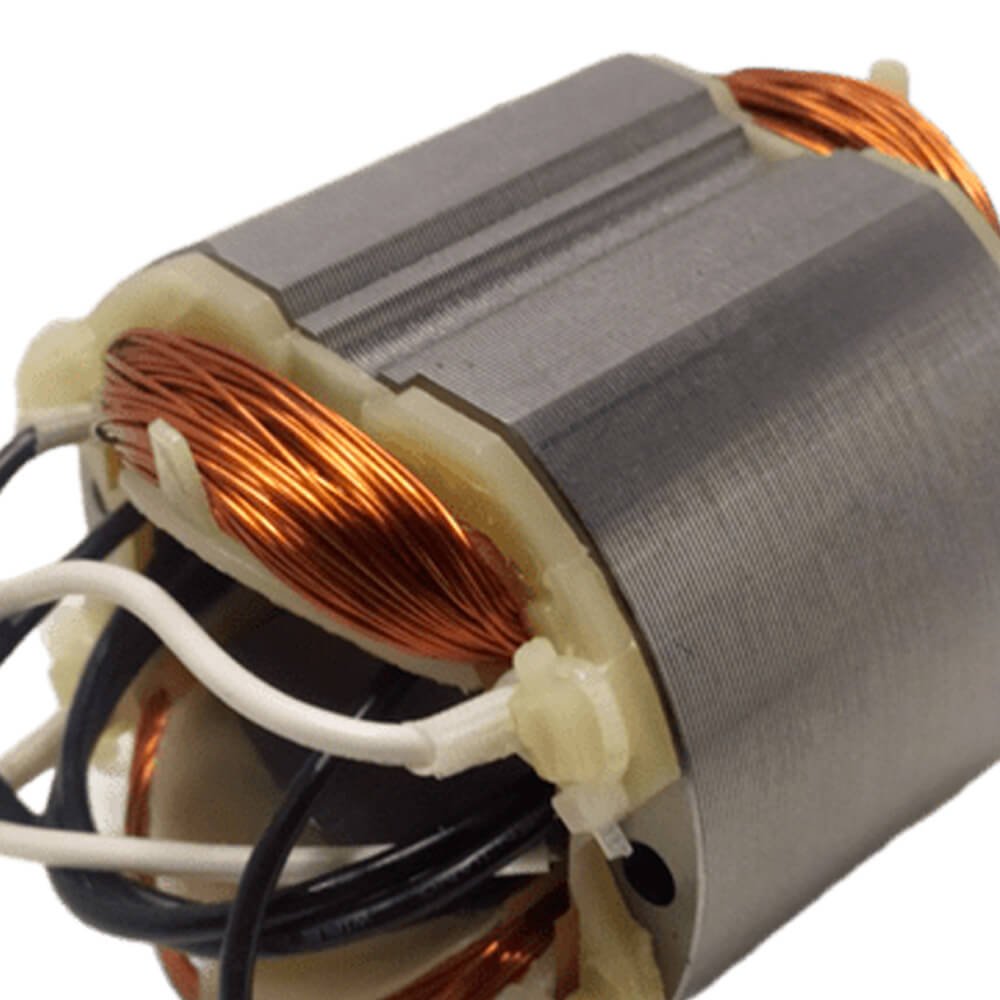 Estator também conhecido como bobina de campo, usado em conjunto com induzido e escovas de carvão.