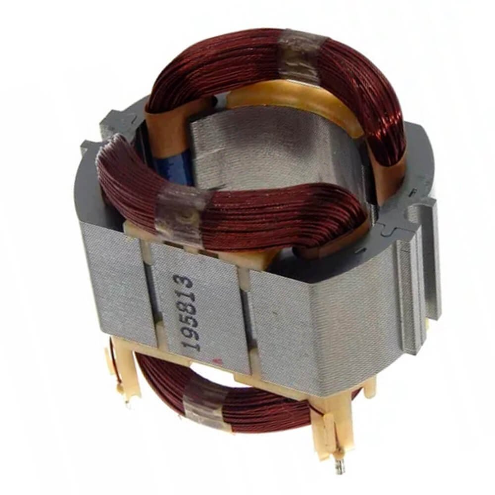 Estator também conhecido como bobina de campo, usado em conjunto com induzido e escovas de carvão.