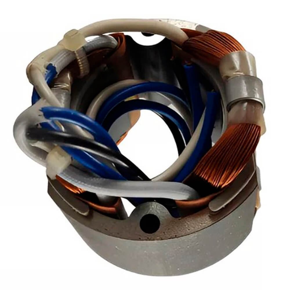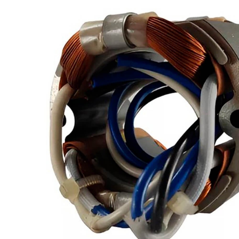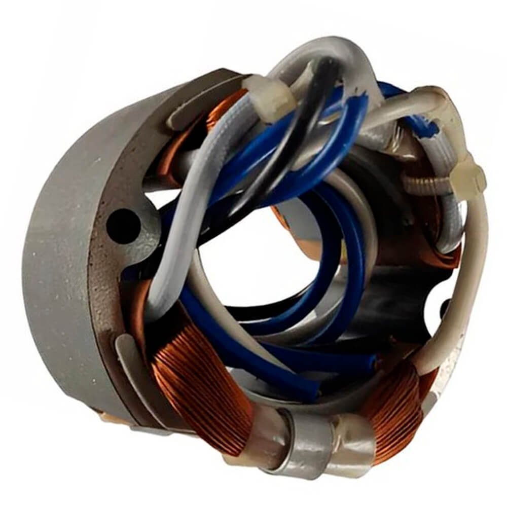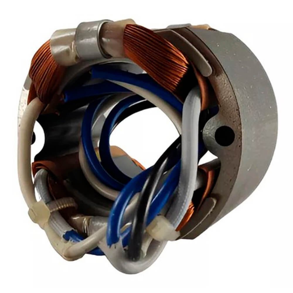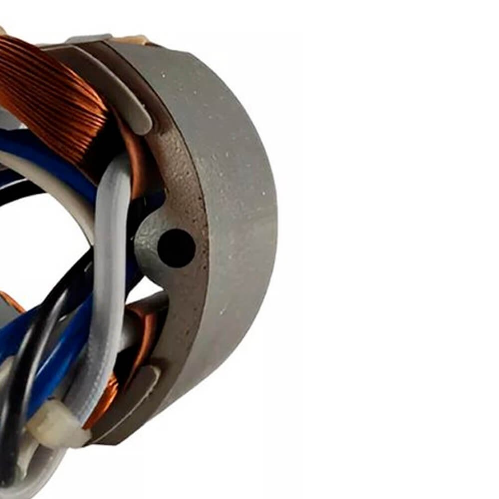 Estator também conhecido como bobina de campo, usado em conjunto com induzido e escovas de carvão.