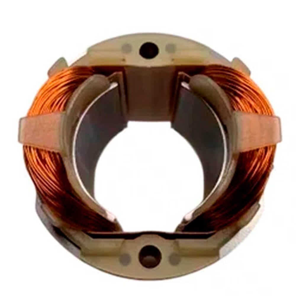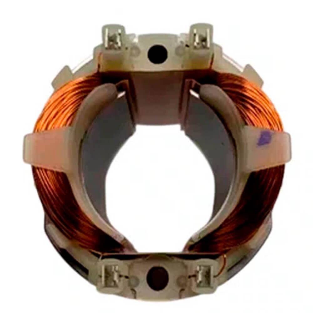 Estator também conhecido como bobina de campo, usado em conjunto com induzido e escovas de carvão.