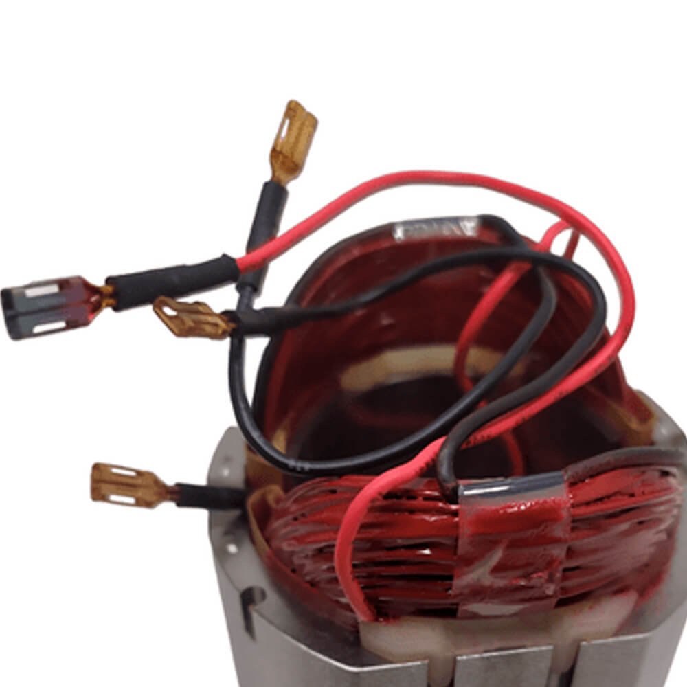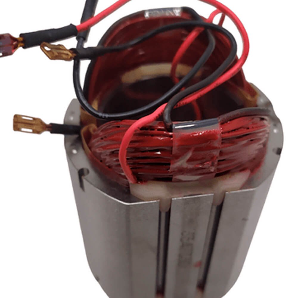 Estator também conhecido como bobina de campo, usado em conjunto com induzido e escovas de carvão.