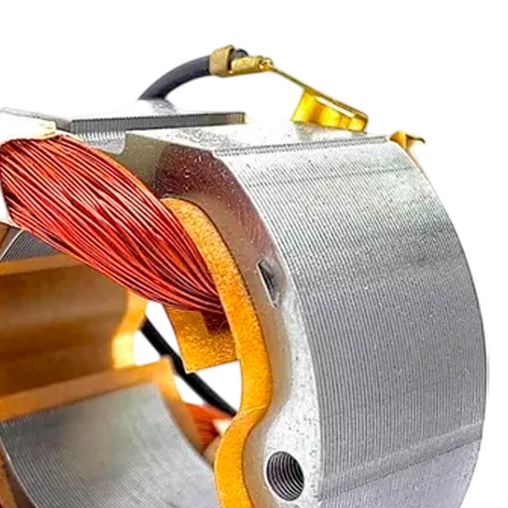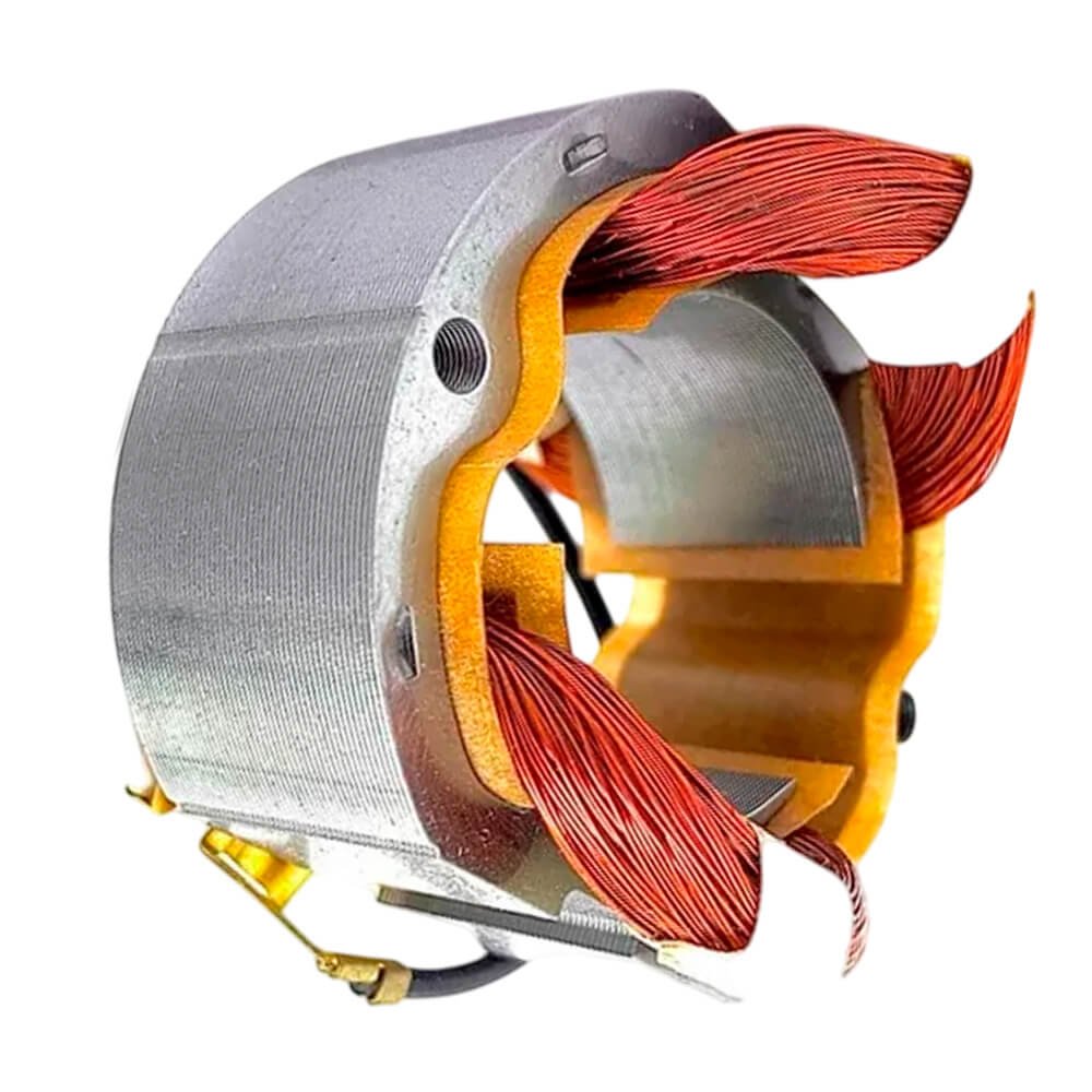 Estator também conhecido como bobina de campo, usado em conjunto com induzido e escovas de carvão.