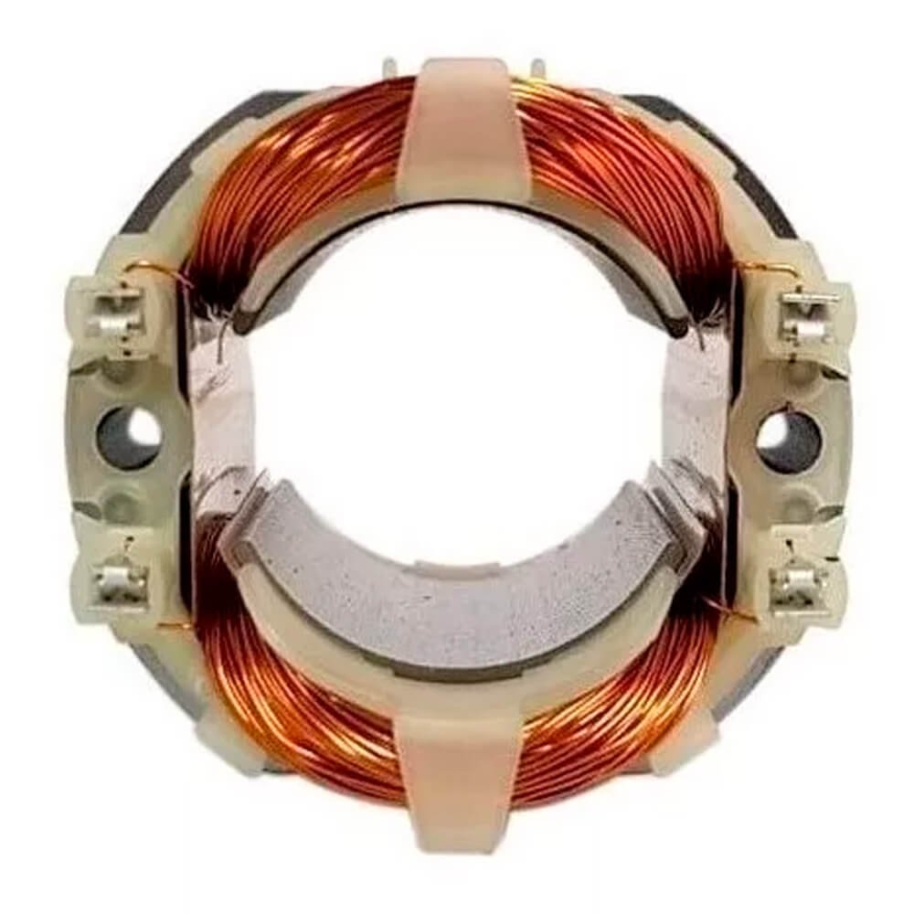 Estator também conhecido como bobina de campo, usado em conjunto com induzido e escovas de carvão.